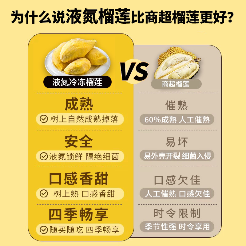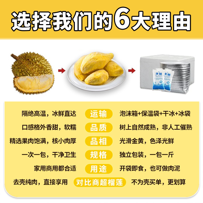 正宗A级泰国金枕树熟带奶皮液氮锁鲜软糯香甜榴莲肉1000g/袋