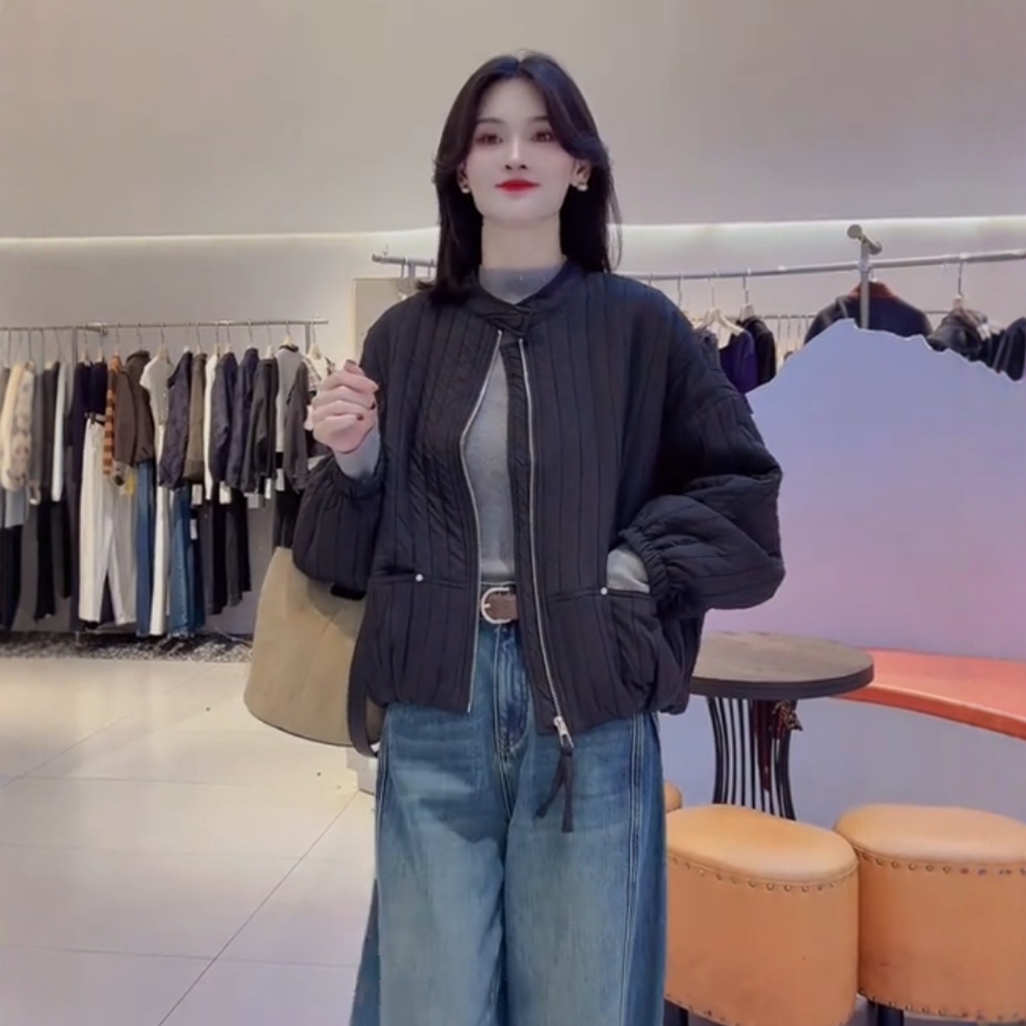 韩系高级感立领轻薄夹棉短外套女装2025秋冬新款时尚洋气棉服上衣