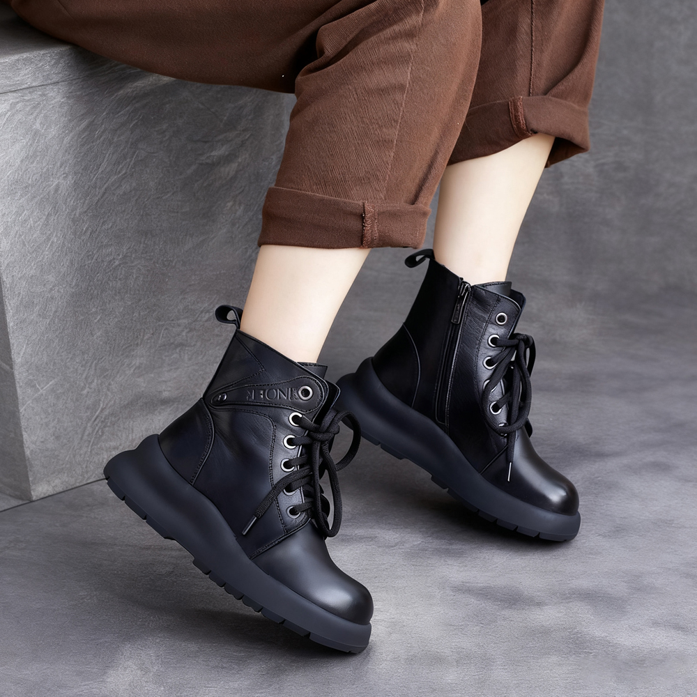 宽头短靴女秋冬新款手工真皮鞋子英伦设计风骑士靴两穿平底马丁靴