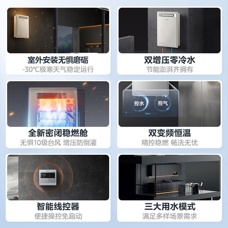 [政府补贴]美的燃气热水器零冷水16L家用天然气速热恒温室外GT164