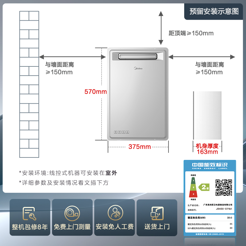 美的室外机燃气热水器GT164