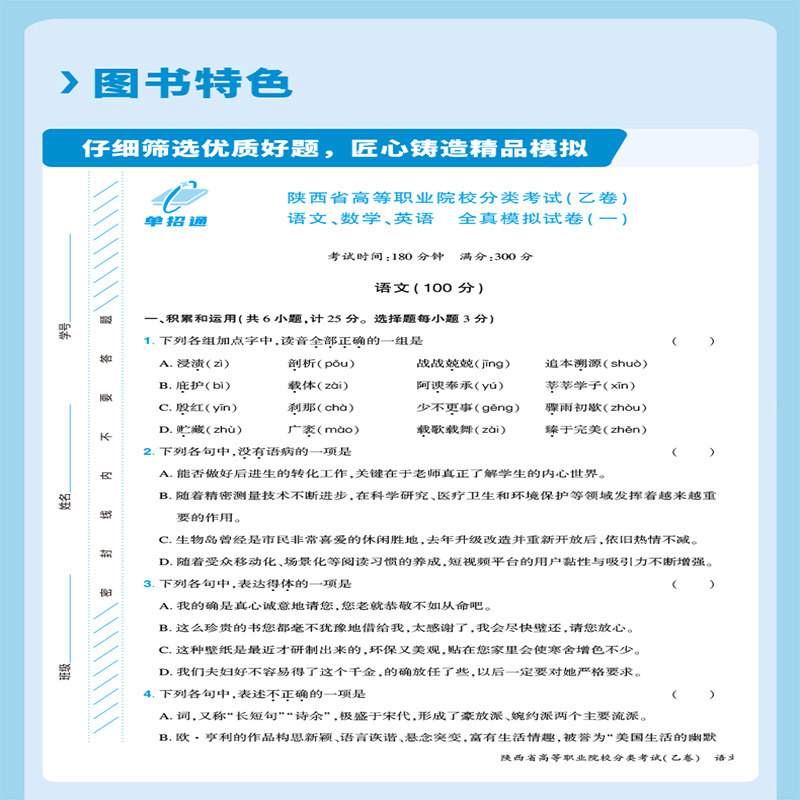 单招通2026年陕西省高职院校分类考试语数英复习教材全真模拟试卷历年真题复习资料普高生三校生乙卷专用