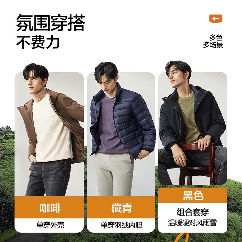 【一衣三穿】柒牌可脱卸内胆羽绒服夹克男士25秋冬新款保暖外套男