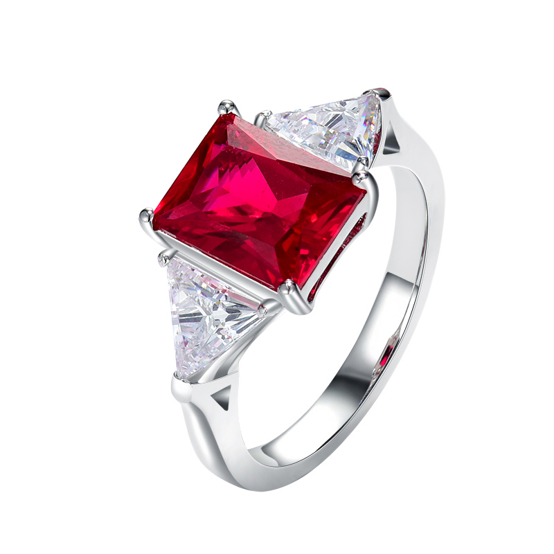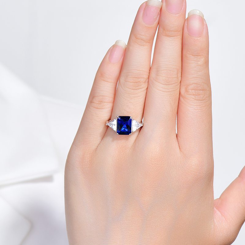 卓蝶珠宝纯银镀金轻奢合成红宝石简约大气蓝宝石戒指气质高级感女