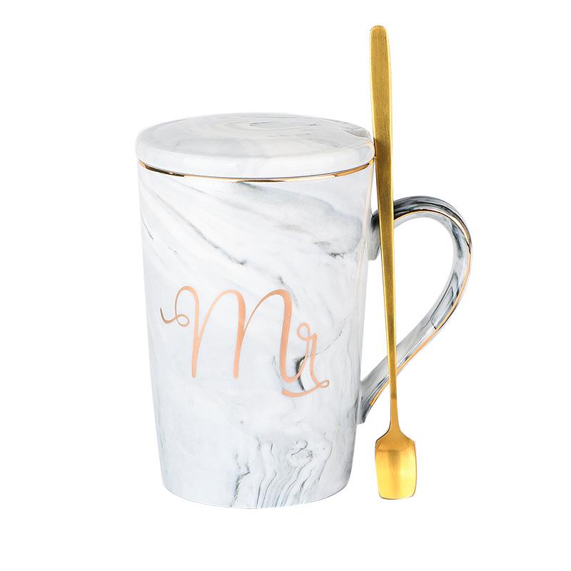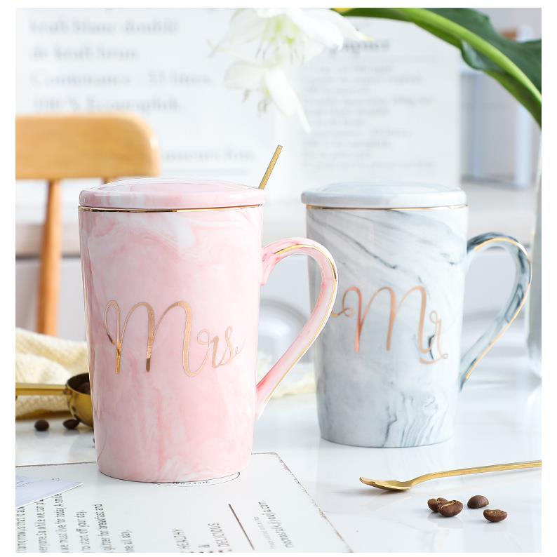 欧式大理石纹陶瓷杯创意马克杯婚庆礼品情侣咖啡杯子套装印制LOGO