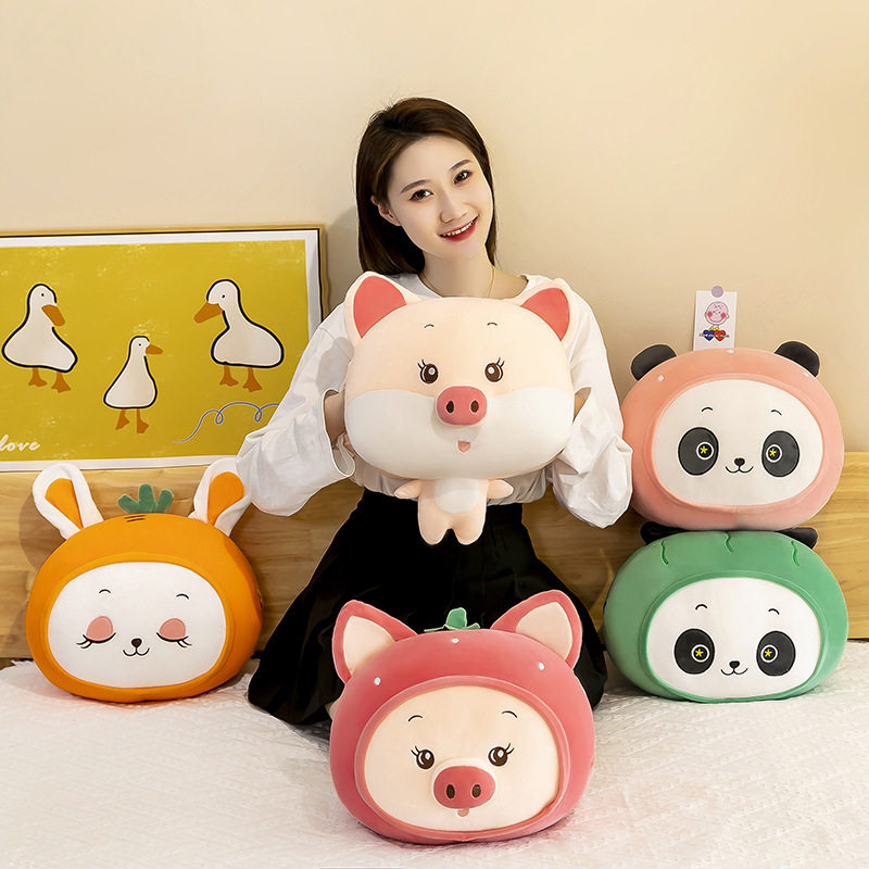 毛绒玩具动物抱枕多功能卡通水果熊猫玩偶抱枕毯三合一抱枕