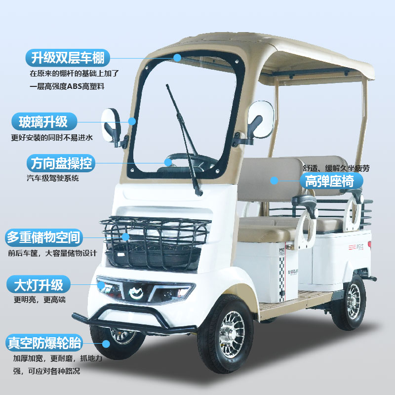小巴士四轮电动车老年代步车助力车老人电瓶车带棚景区共享观光车