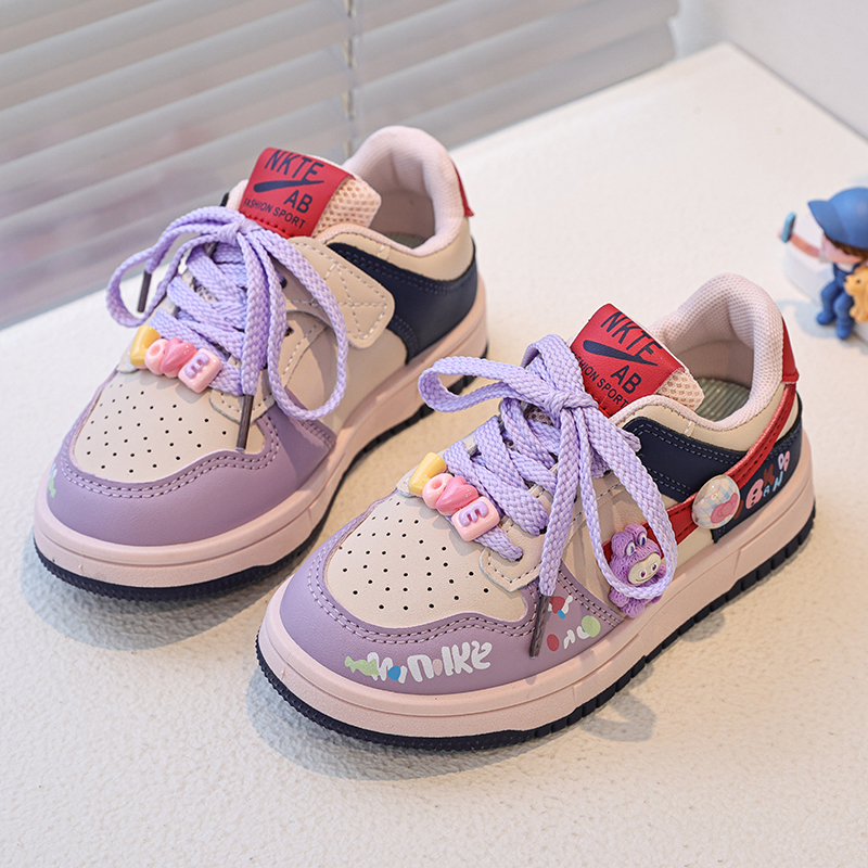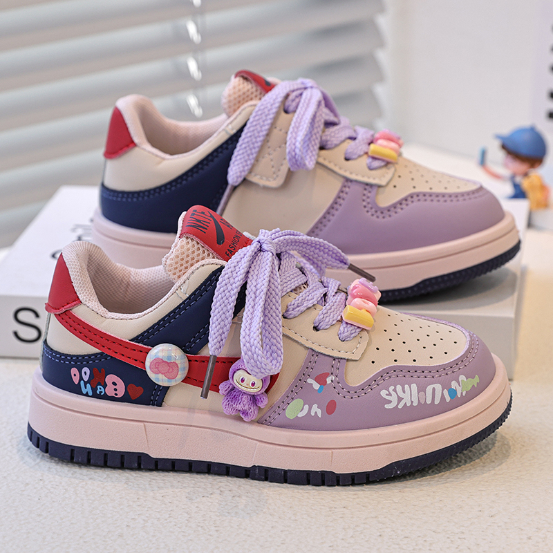 女童板鞋休闲小学生儿童运动鞋2025新款皮面软底防滑跑步鞋百搭鞋