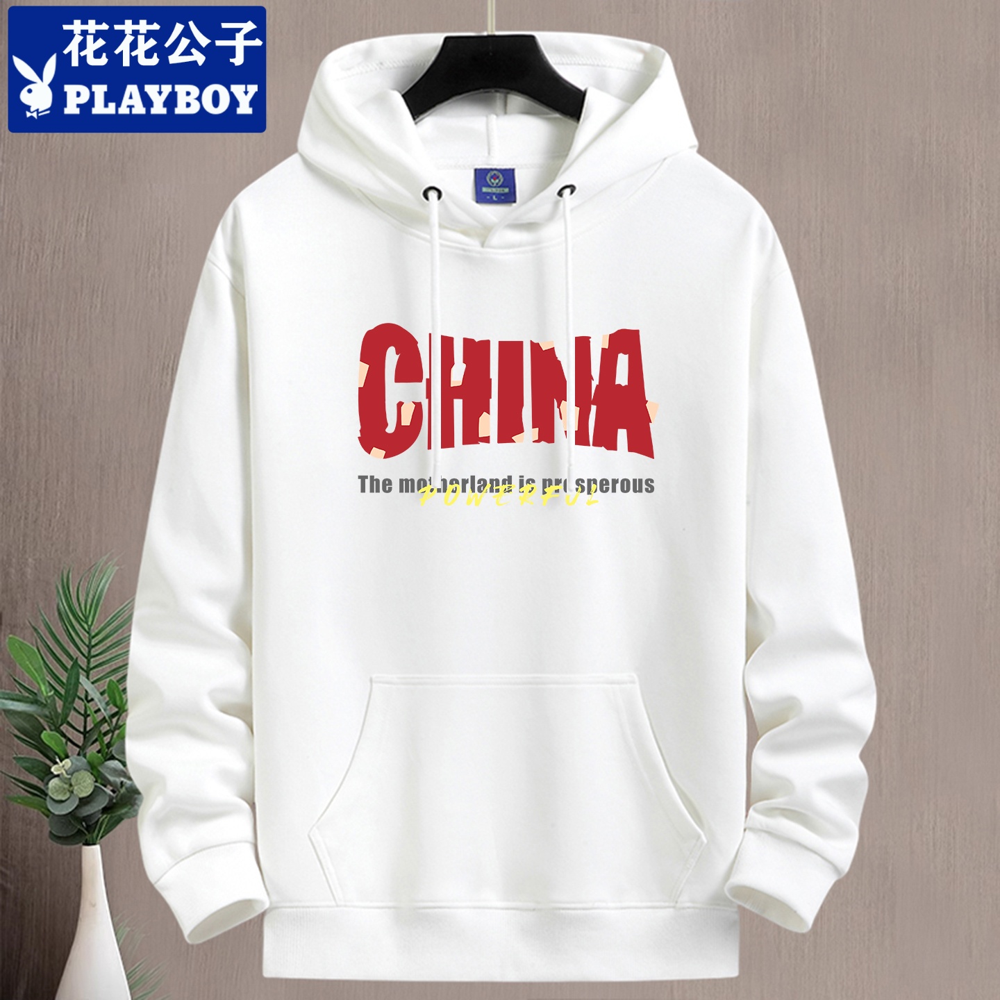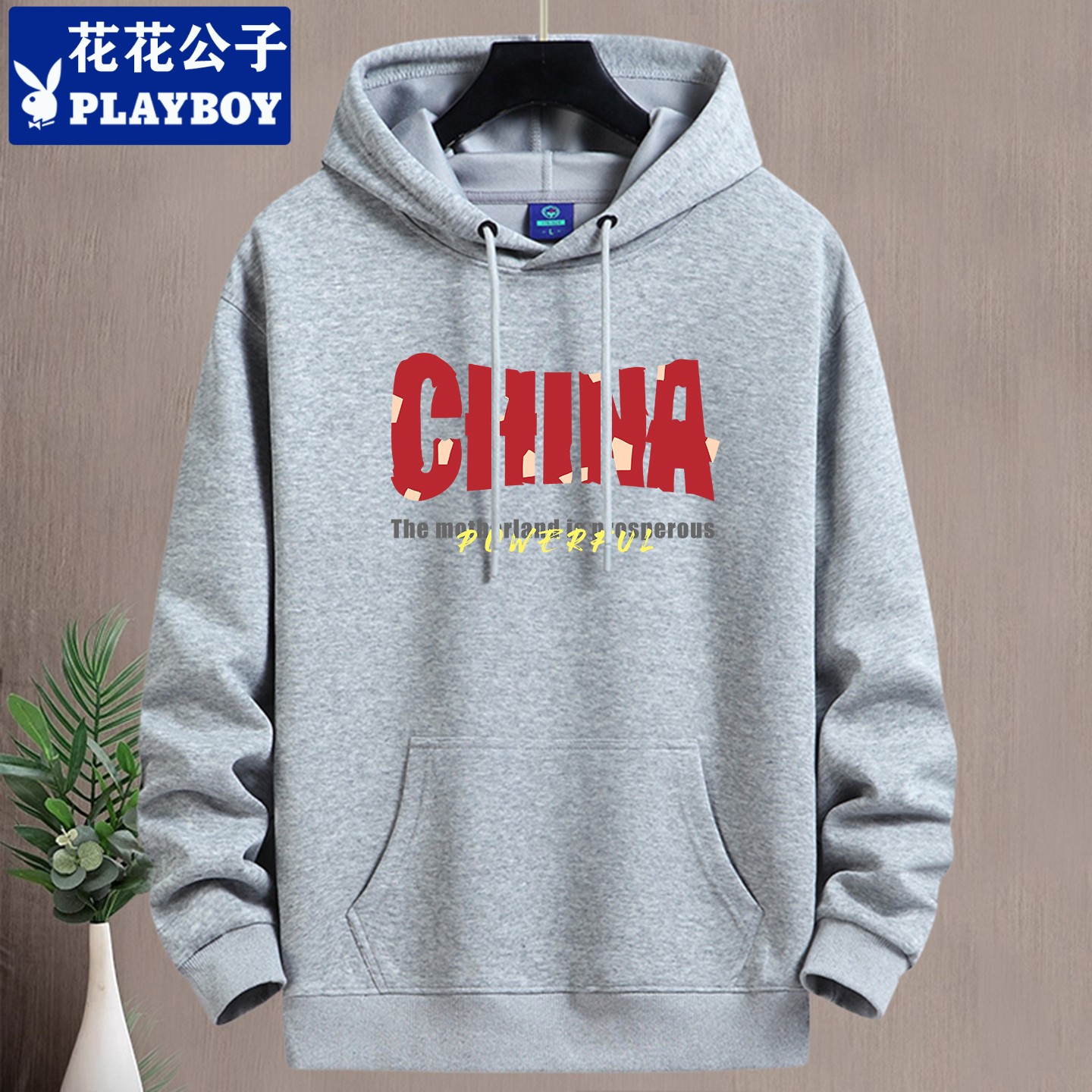 花花公子秋冬连帽卫衣男款加绒加厚青年学生宽松休闲百搭保暖帽衫