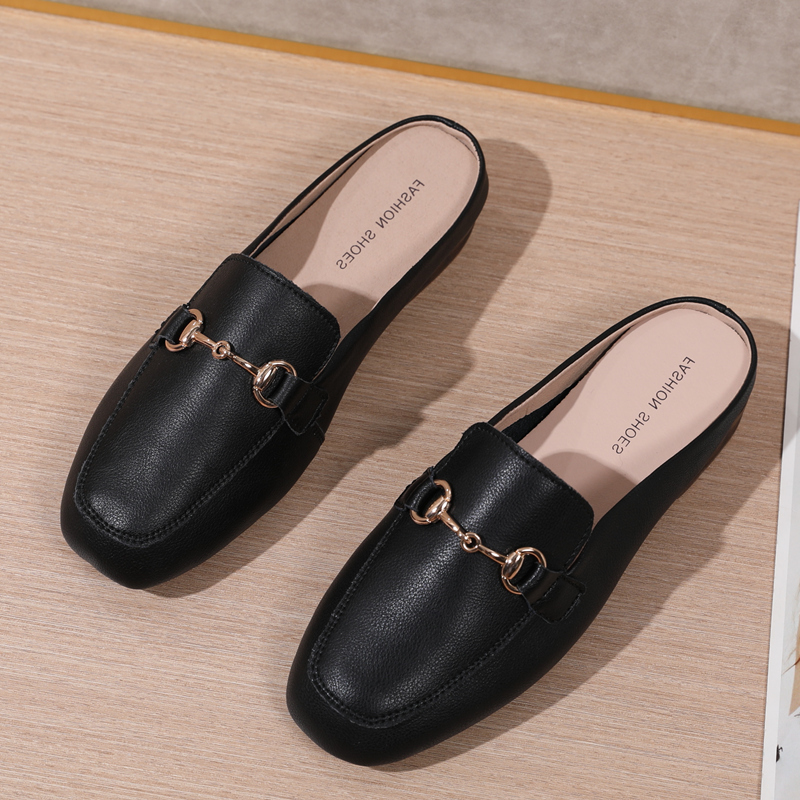 真皮包头半拖鞋女百搭外穿平底穆勒防滑2024夏季软底防滑懒人拖鞋
