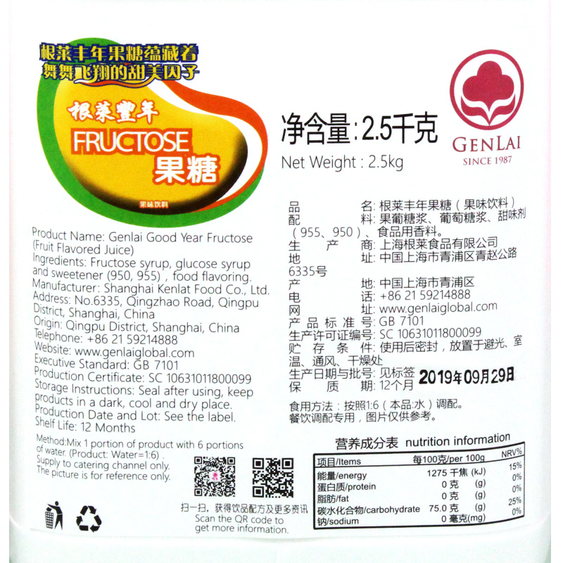 根莱 调味液体糖浆2.5kg/桶 果葡糖浆 果糖 咖啡奶茶饮品专用原料