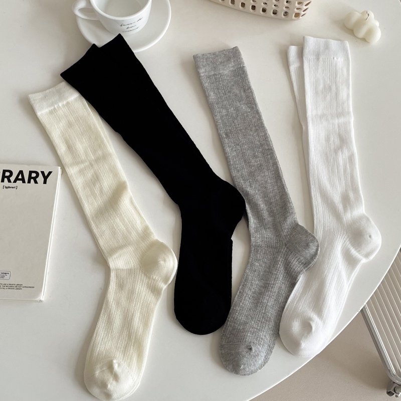Miu芭蕾风灰色小腿袜子女夏季薄款竖条显瘦堆堆袜日系少女jk长袜