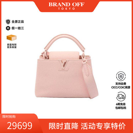 中古LV路易威登女包A级95新Capucines BB牛皮斜挎包粉色BRANDOFF