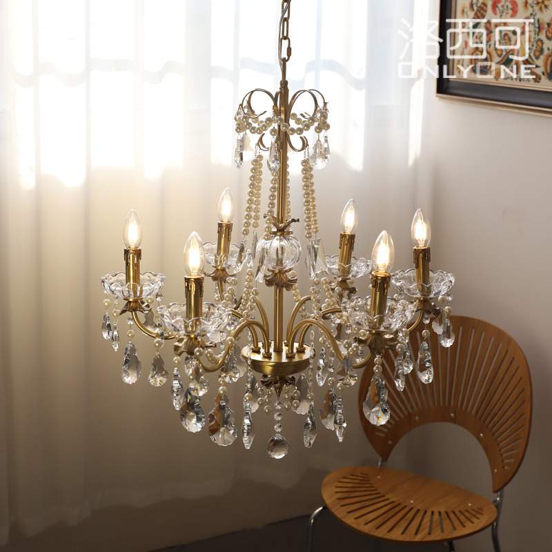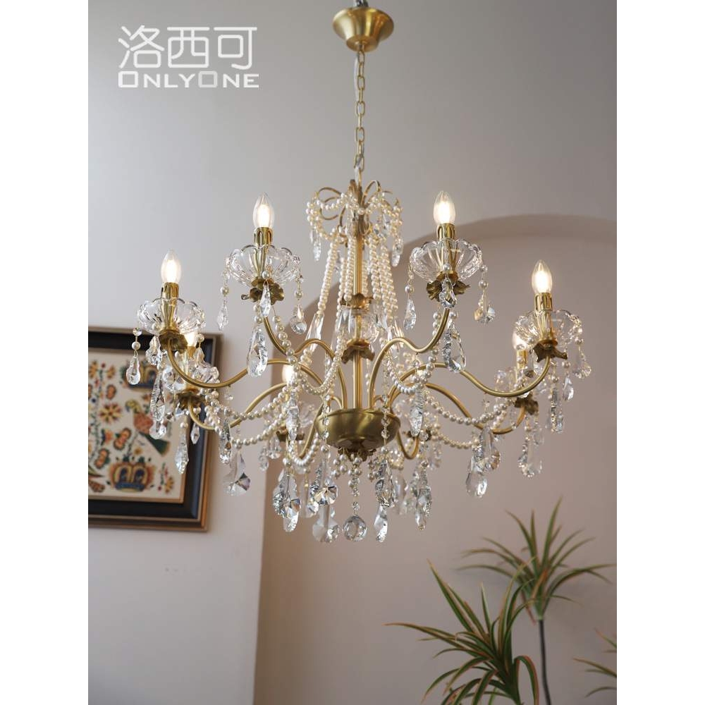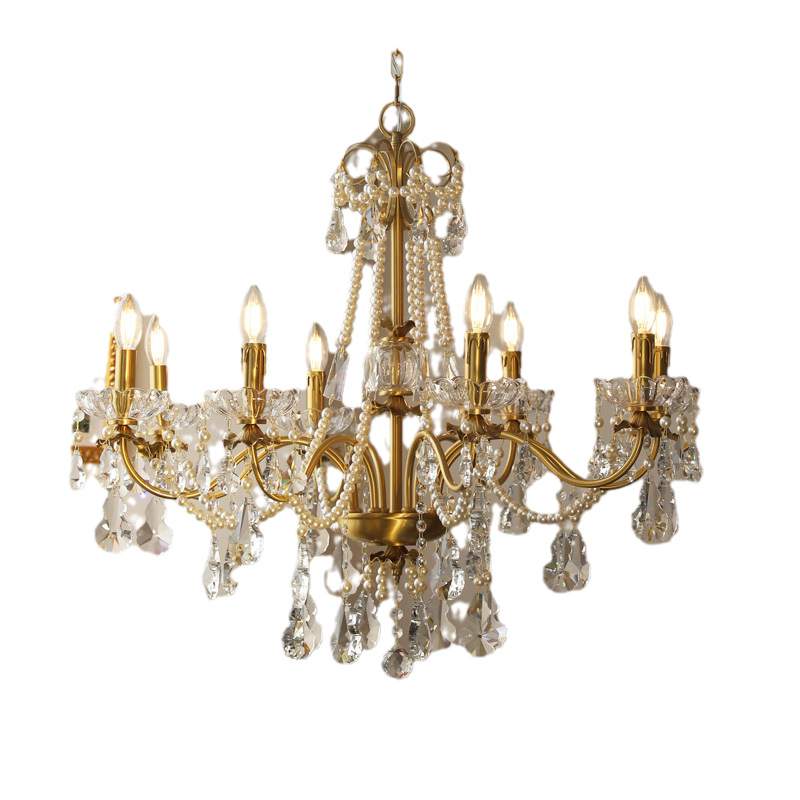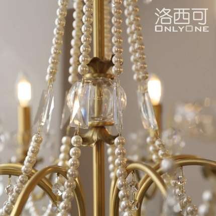 法式水晶珍珠铜吊灯美式欧式别墅客厅餐厅卧室全铜灯具8头6头吊灯