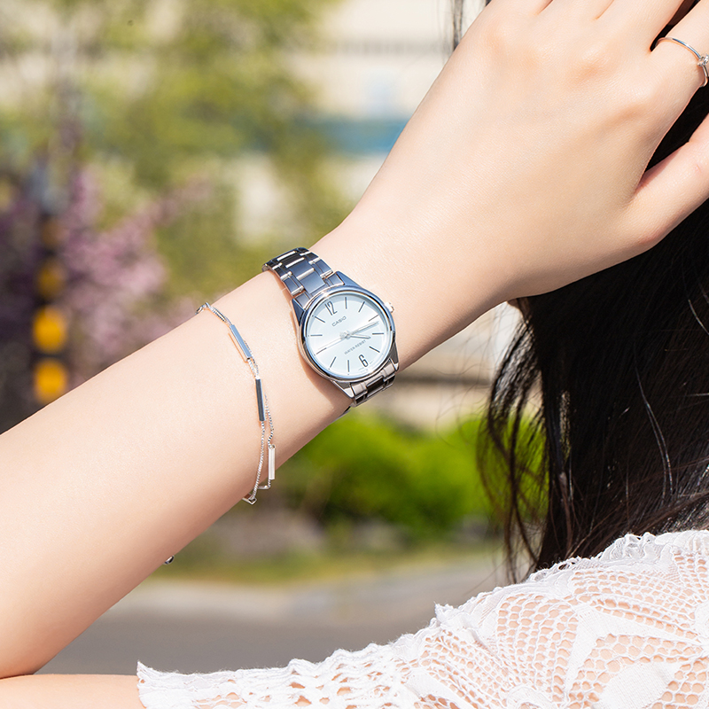 Casio卡西欧手表女休闲石英指针钢带女表LTP-V005海外直邮