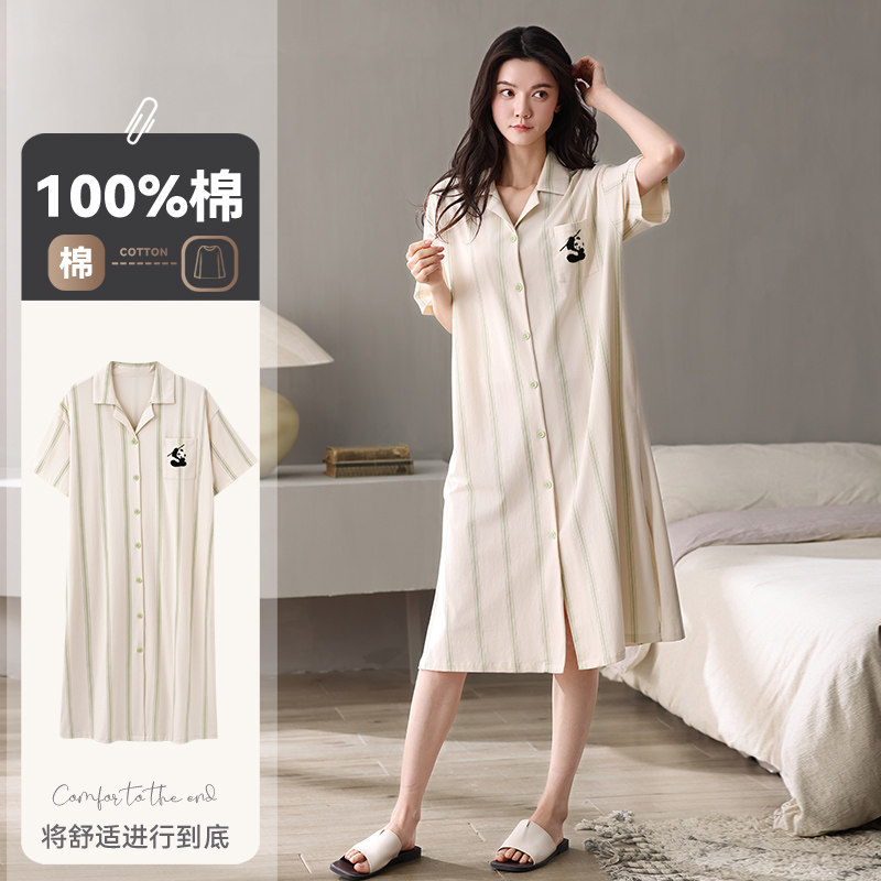 夏季睡裙女款短袖纯棉睡衣2025新款夏天孕妇可外穿开衫女士家居服