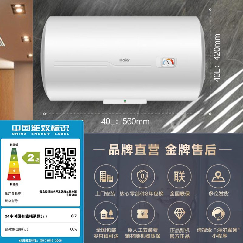 海尔电热水器电家用60L小型40升80升储水式洗澡机50l速热抑菌节能