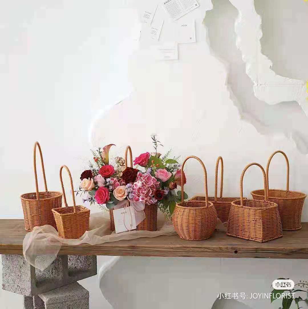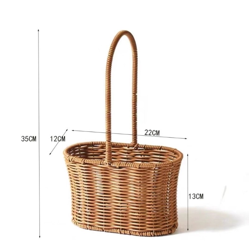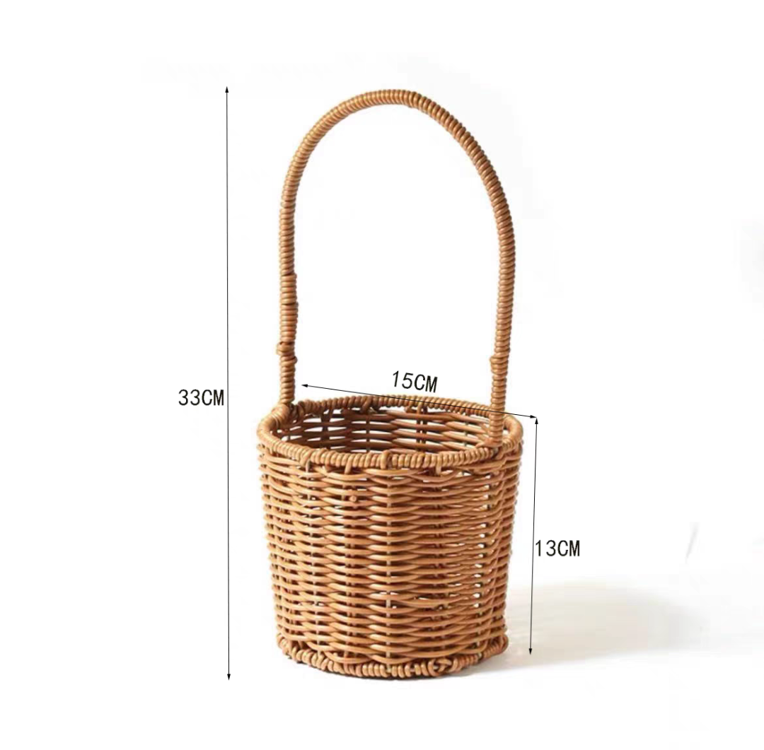 仿藤条手工编织花篮田园风系列塑料藤编手提篮绿植小花篮装饰摆件