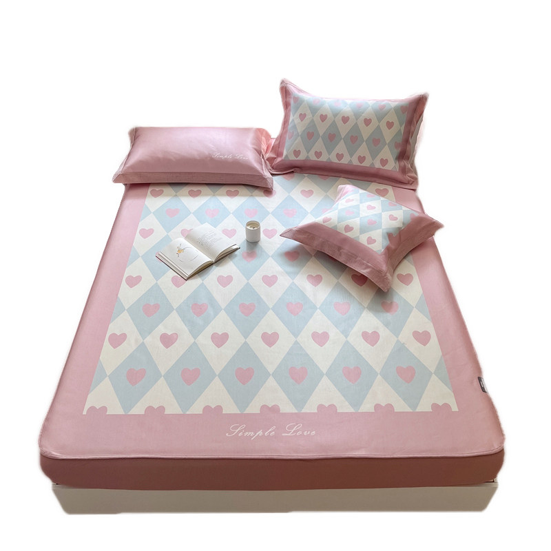 夏款冰丝凉席三件套可水洗印花床笠款单双人1.5m1.8米空调软席子