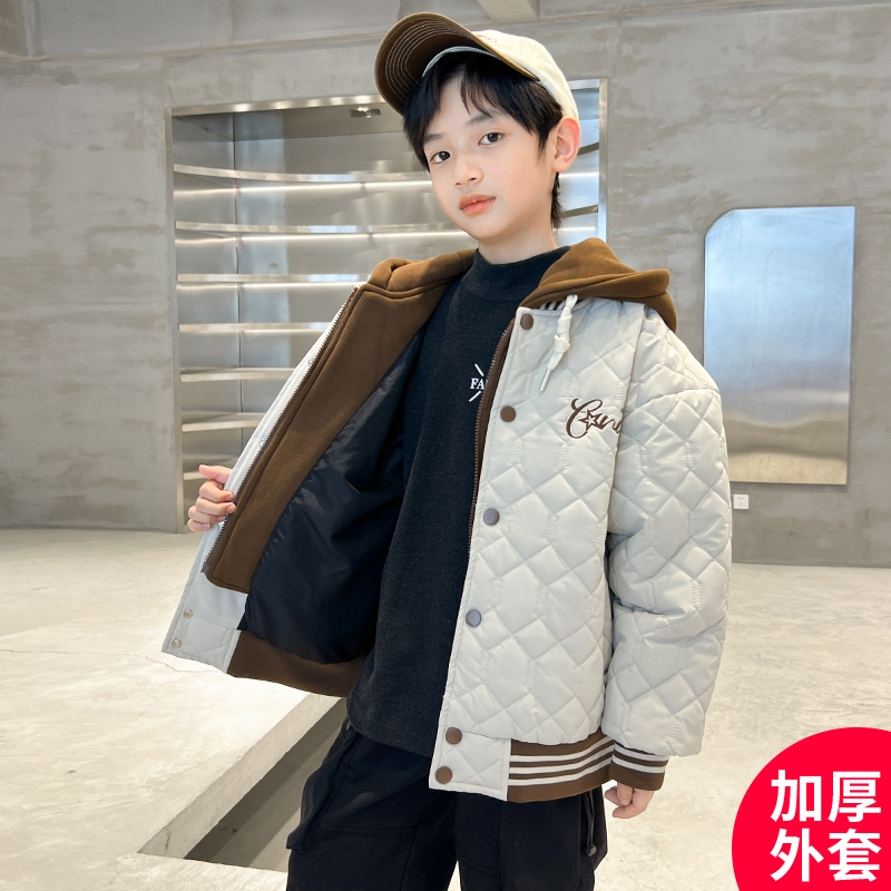 儿童装男童外套秋冬款2025新款加厚夹棉休闲冬季中大童棒球服酷帅