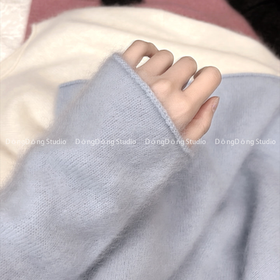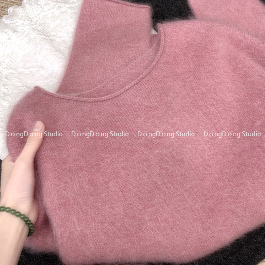 年终回馈~[粉豆沙]无缝拉绒卷边圆领套头宽松长袖针织衫毛衣9220