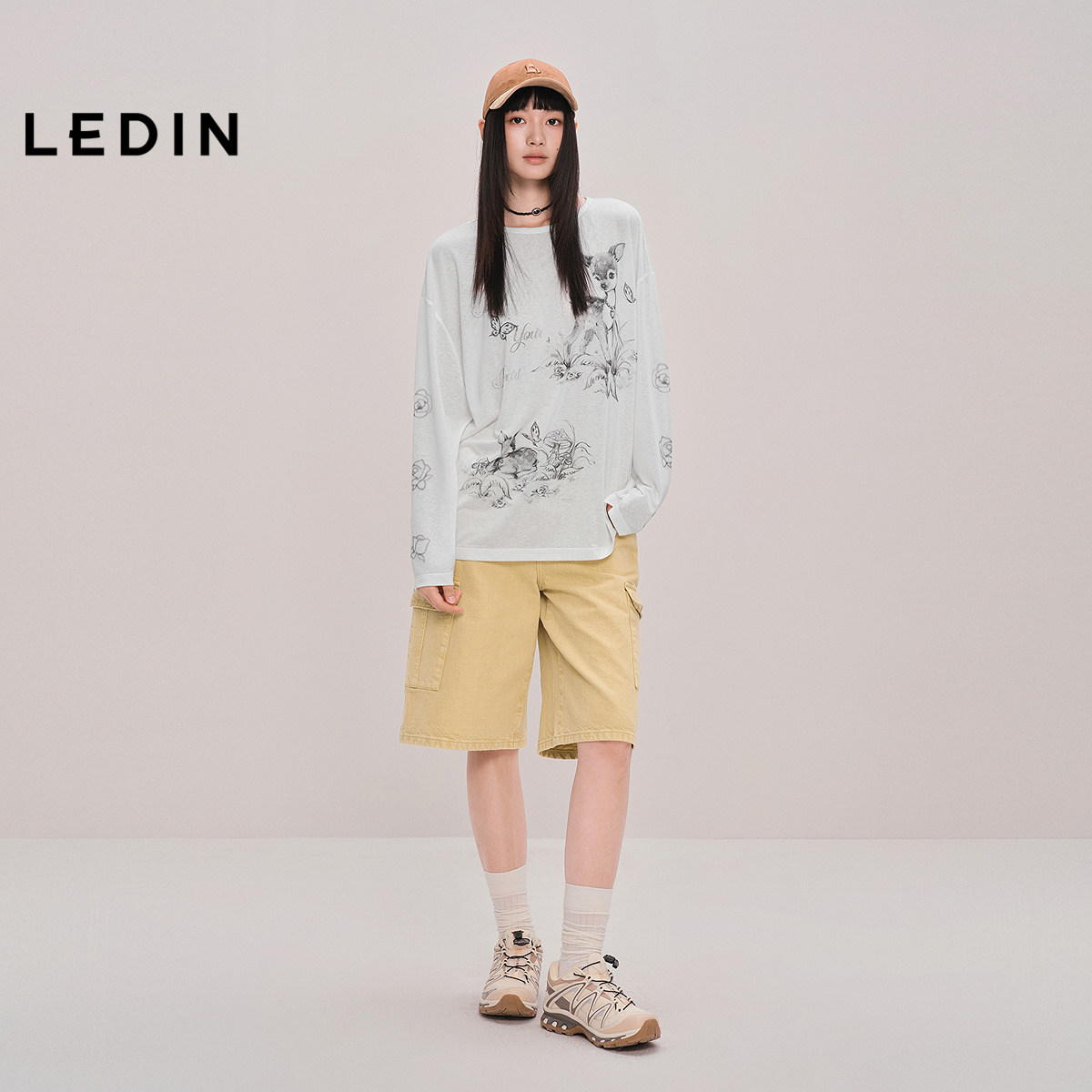 【商场同款】乐町草米色牛仔中短裤2025秋季新款牛仔裤C2HBF3158