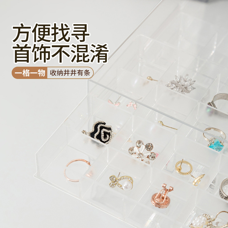 首饰收纳盒透明亚克力大容量桌面存放项链耳饰耳环戒指饰品置物架