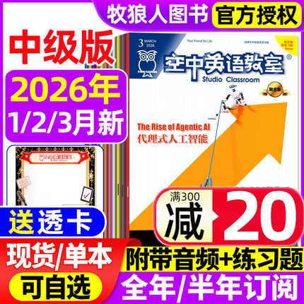 空中英语教室中级版杂志2026年1/2/3月(全年/半年订阅/2025年1-12月)融合版初高中学生英文课阅读全彩美文口语大学四六级L2024过刊