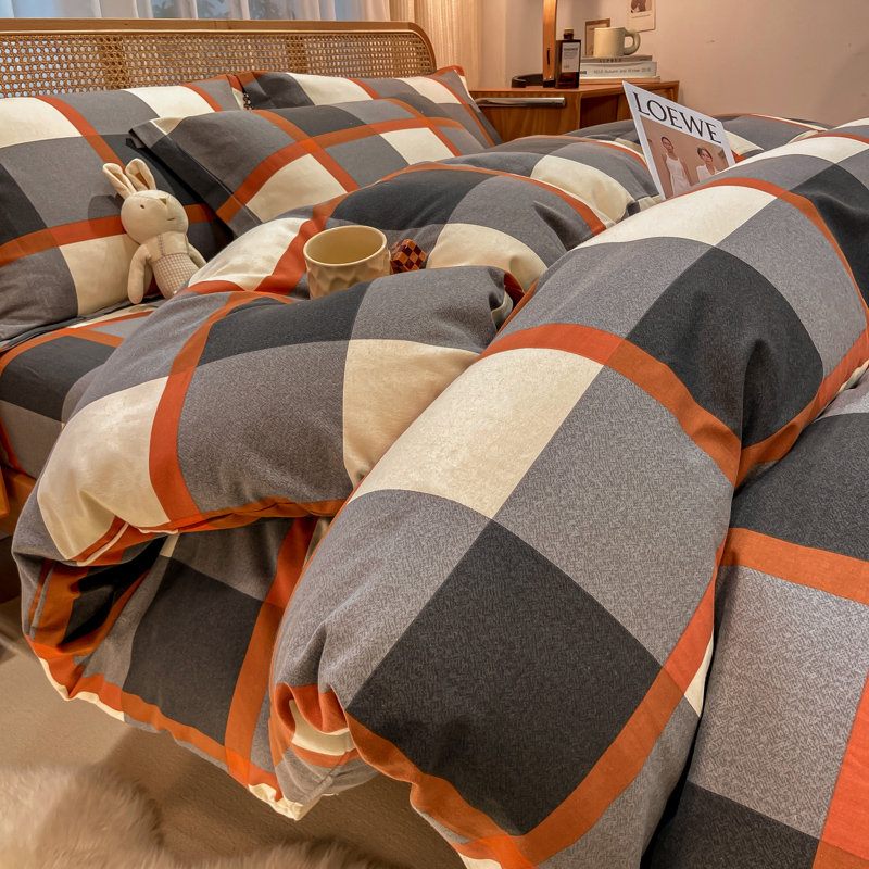 纯棉全棉加厚磨毛格子四件套