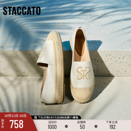思加图2025新款大麦鞋复古渔夫鞋平底鞋浅口单鞋女鞋9UA13AA5