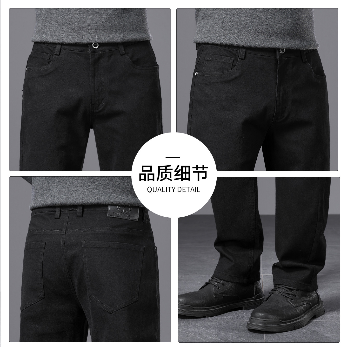 皮尔卡丹2025秋冬新款黑色高端纯棉牛仔裤男加厚加绒直筒弹力长裤