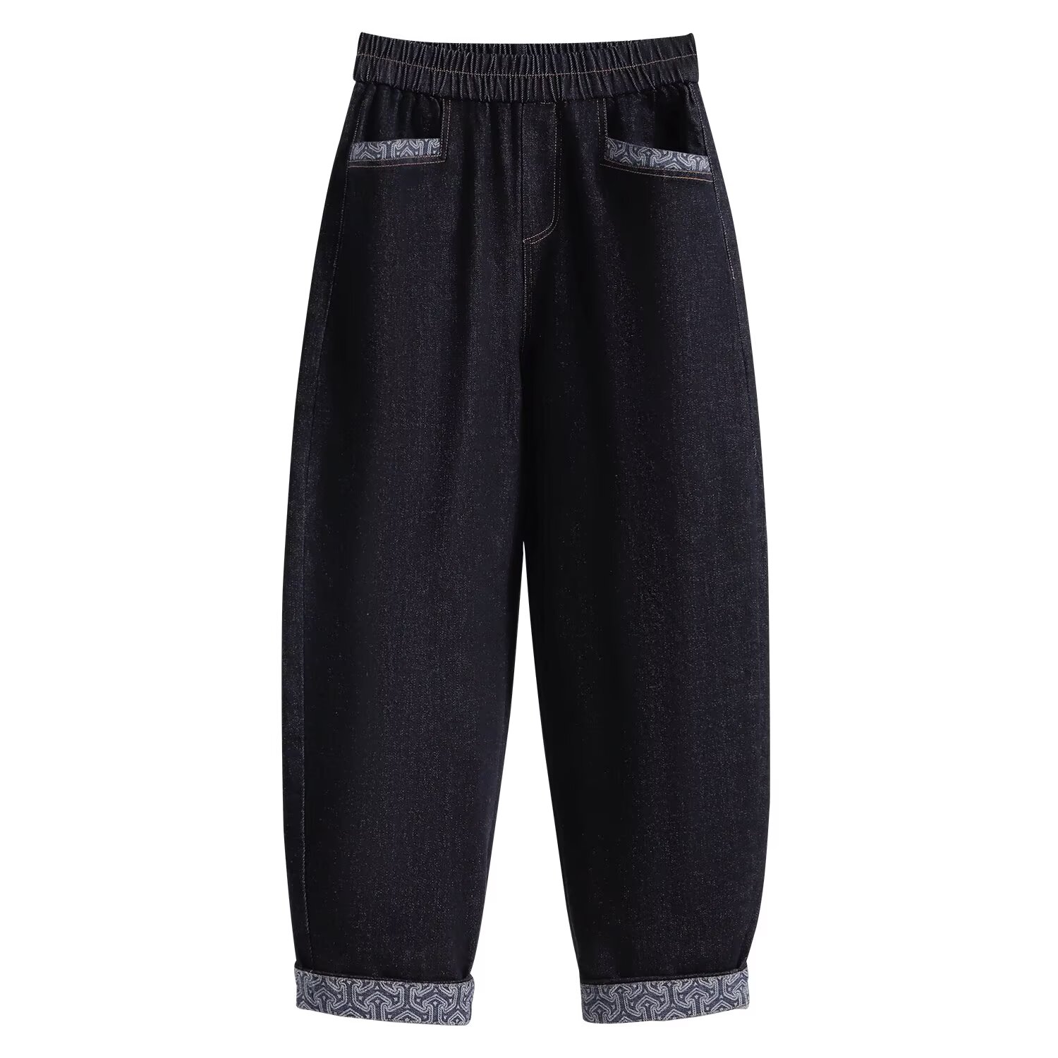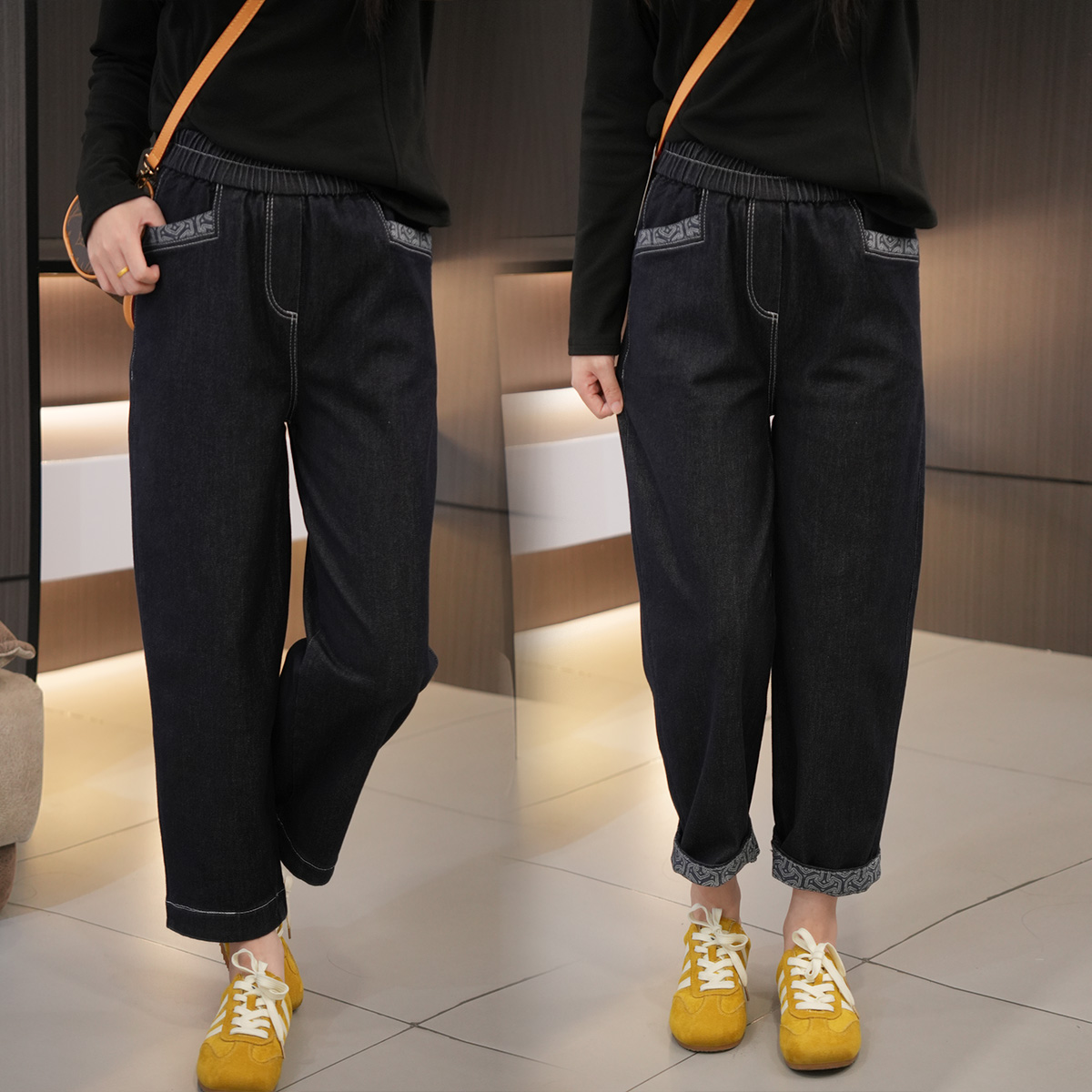 2025新款大码女装松紧腰老爹裤秋季胖妹妹高腰百搭显瘦九分直筒裤