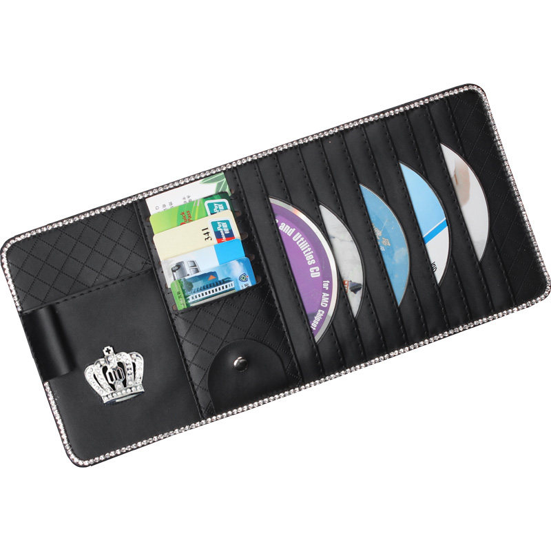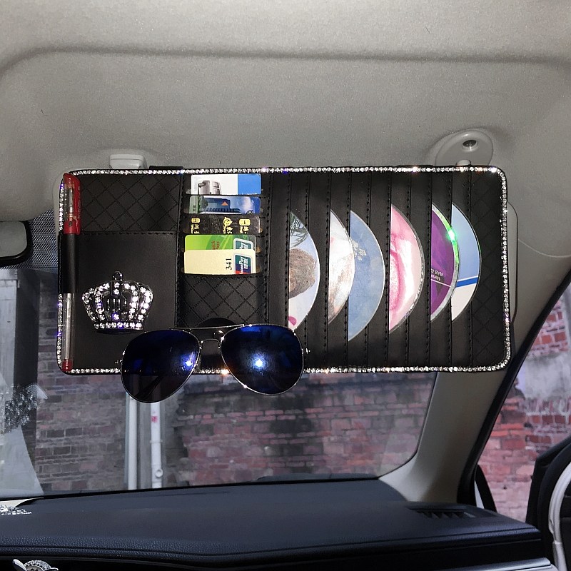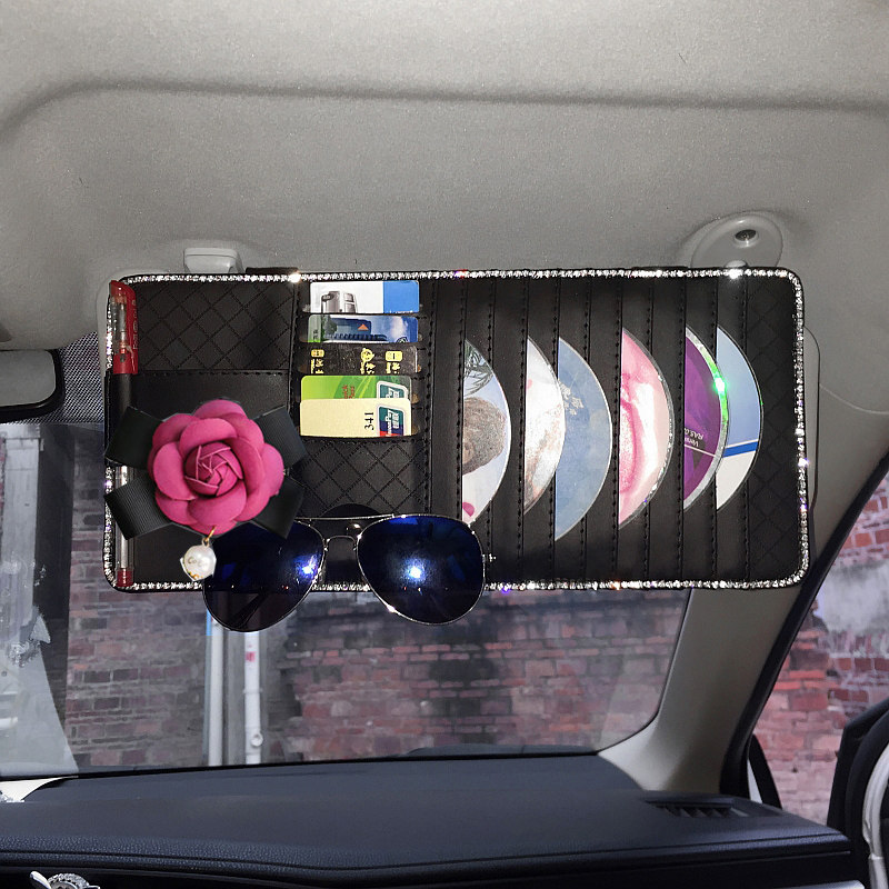 时尚山茶花汽车遮阳板套多功能通用镶钻车载眼镜架卡片夹CD收纳包