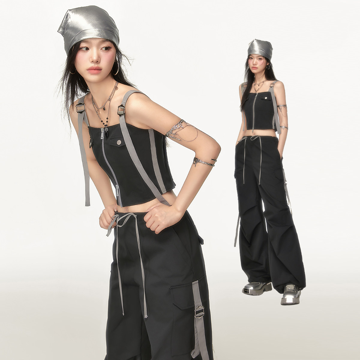 EPTISON时尚套装女2025夏季新款复古工装小背心上衣休闲裤两件套