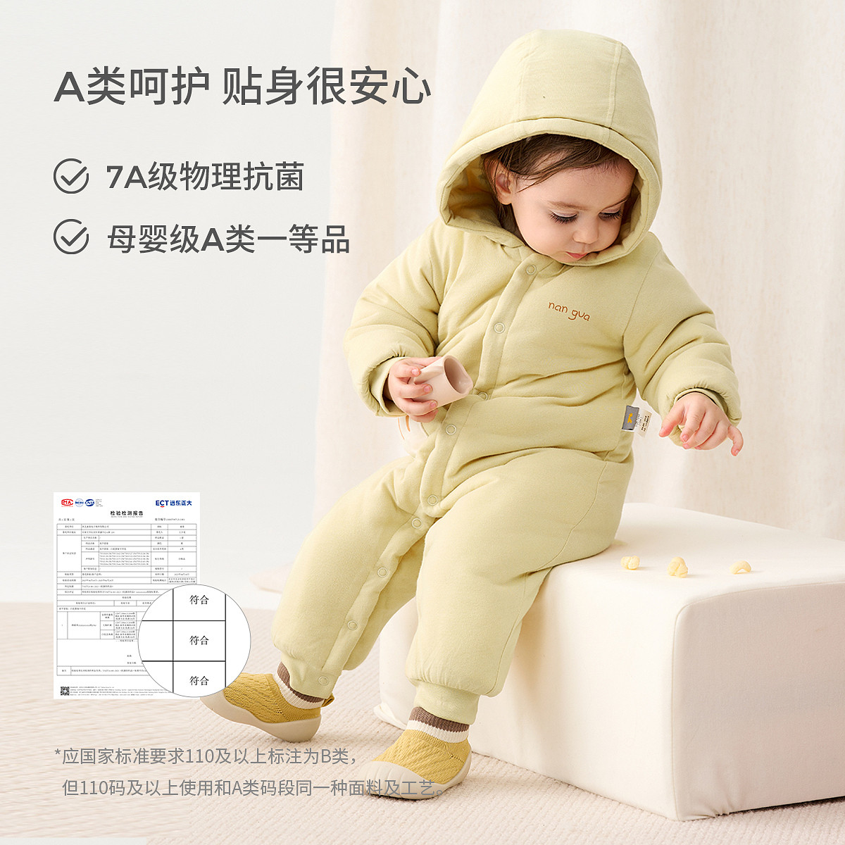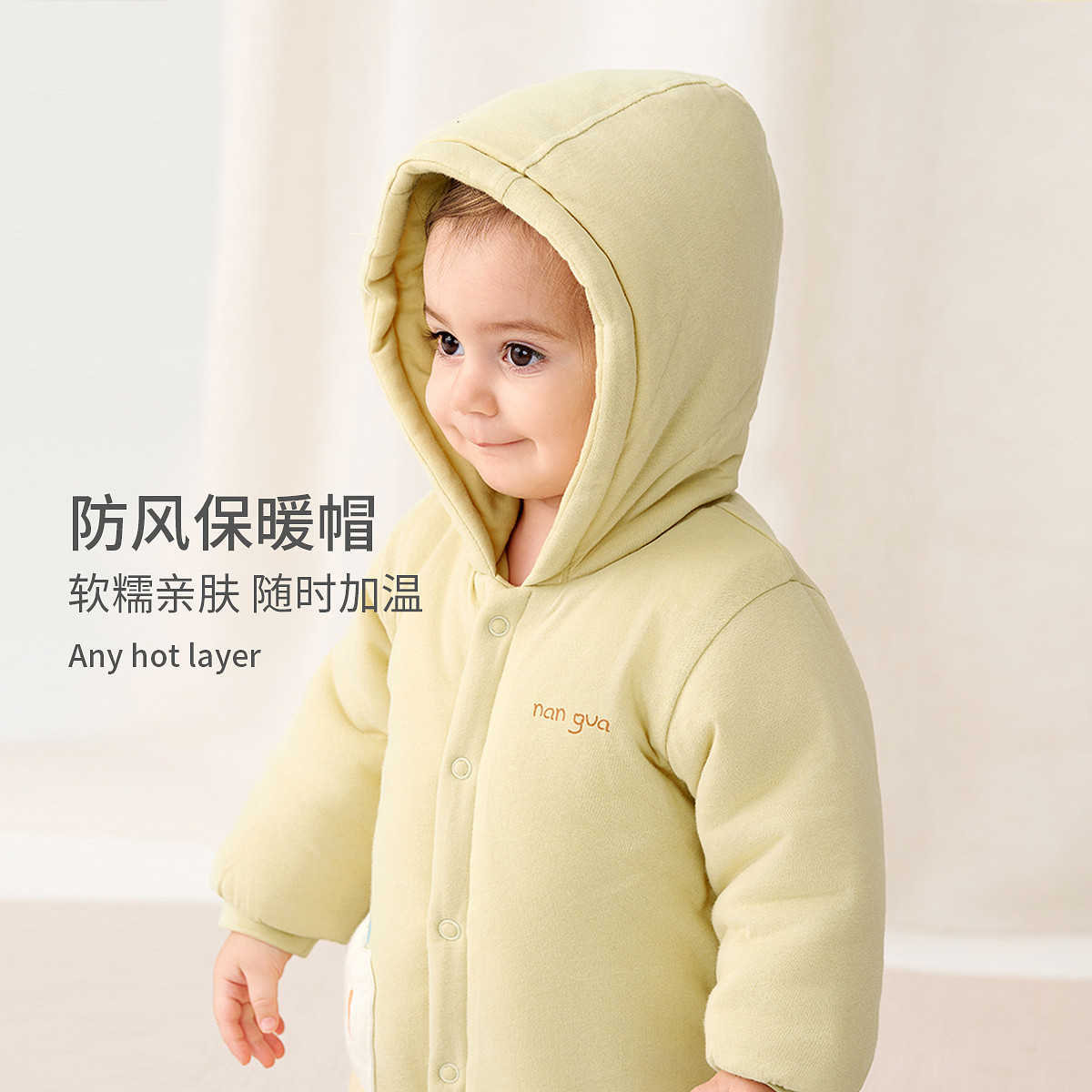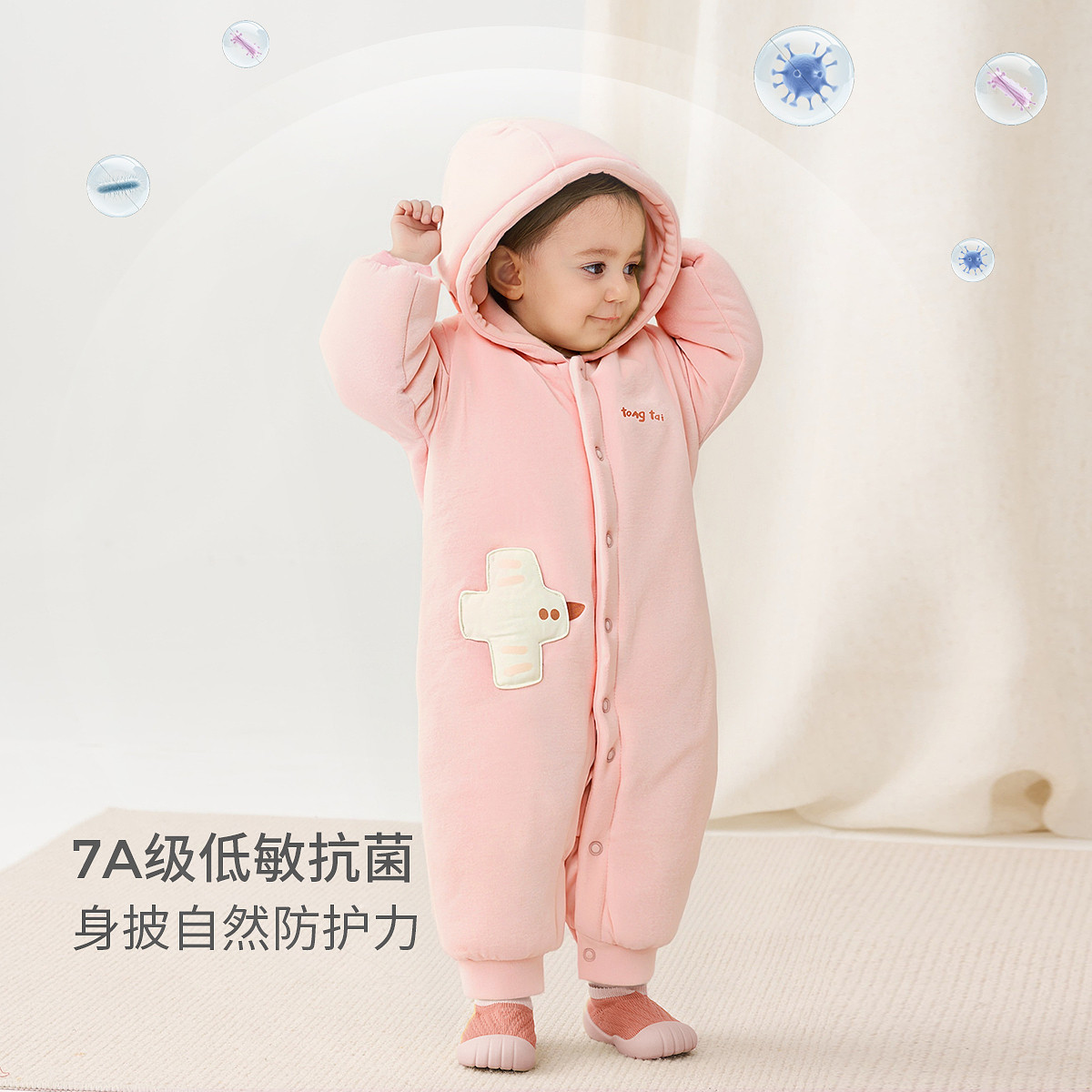 童泰婴儿连体衣冬季纯棉夹棉宝宝衣服新生儿连帽哈衣儿童外出爬服