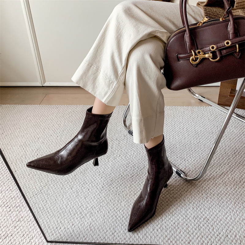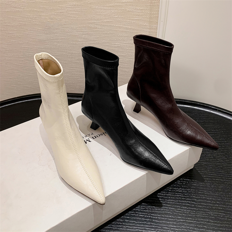 强推自留~!韩国ins尖头细跟弹力短靴百搭高跟春秋及踝靴瘦瘦靴女
