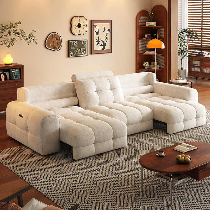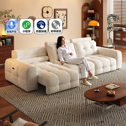 拉芙菲奶油风电动布艺沙发床大小户型多功能伸缩直排客厅布艺沙发
