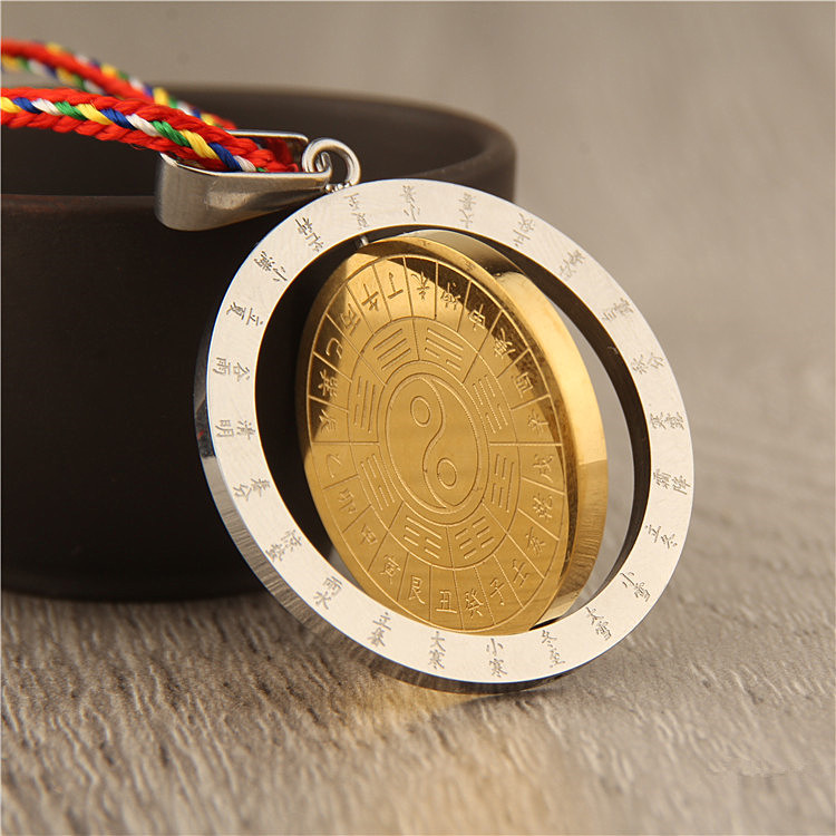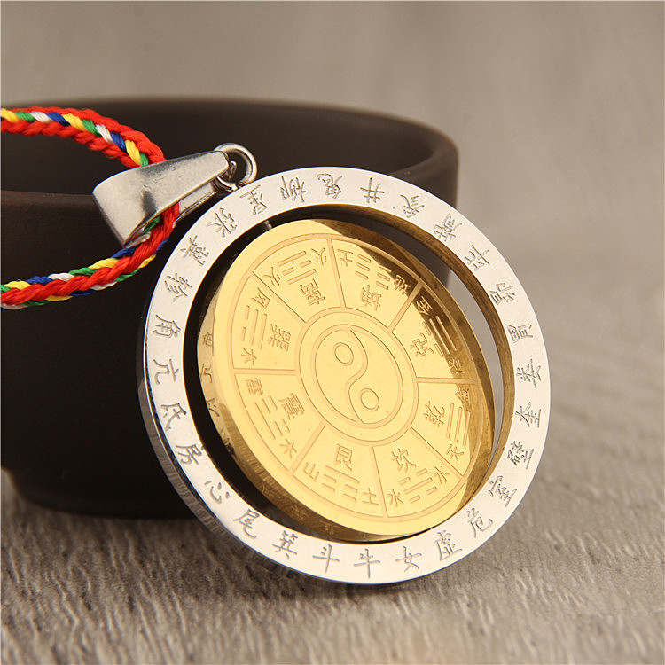 道家可转动斗者皆阵列前行九字真言太极图八卦项链吊坠护身符男女