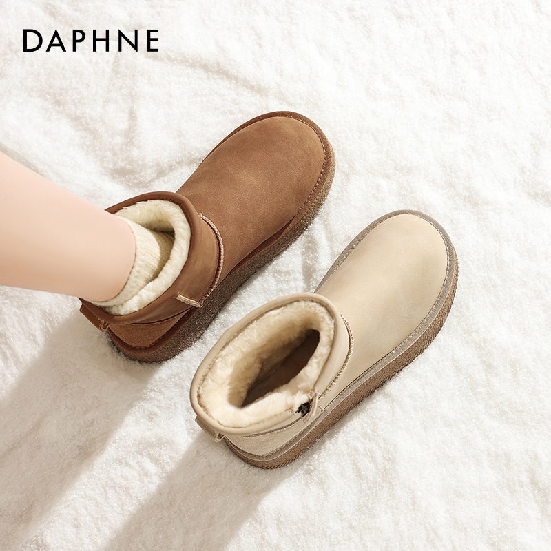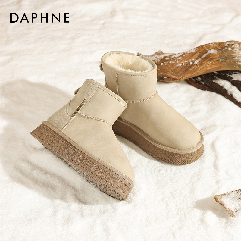 达芙妮厚底雪地靴女加绒保暖棉鞋