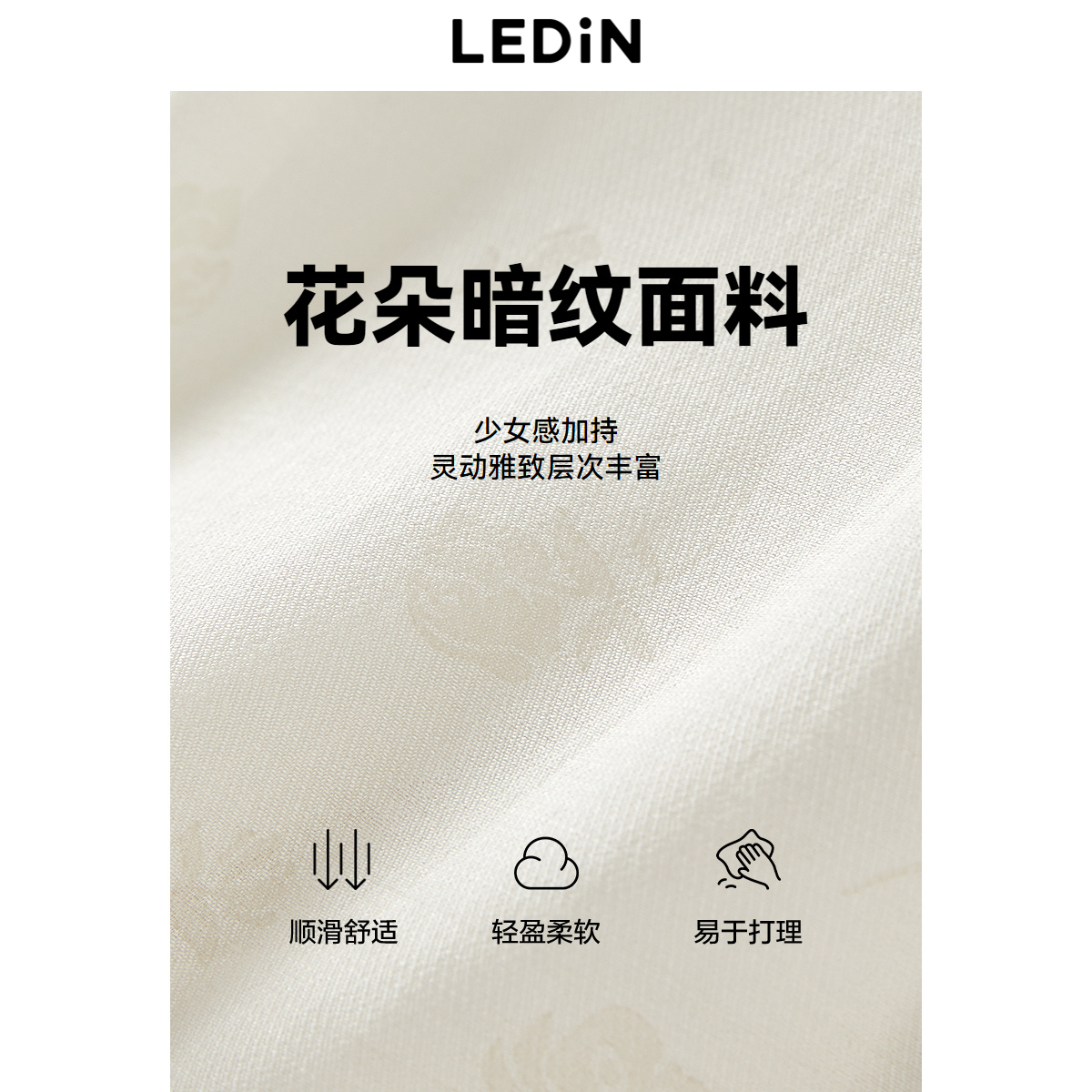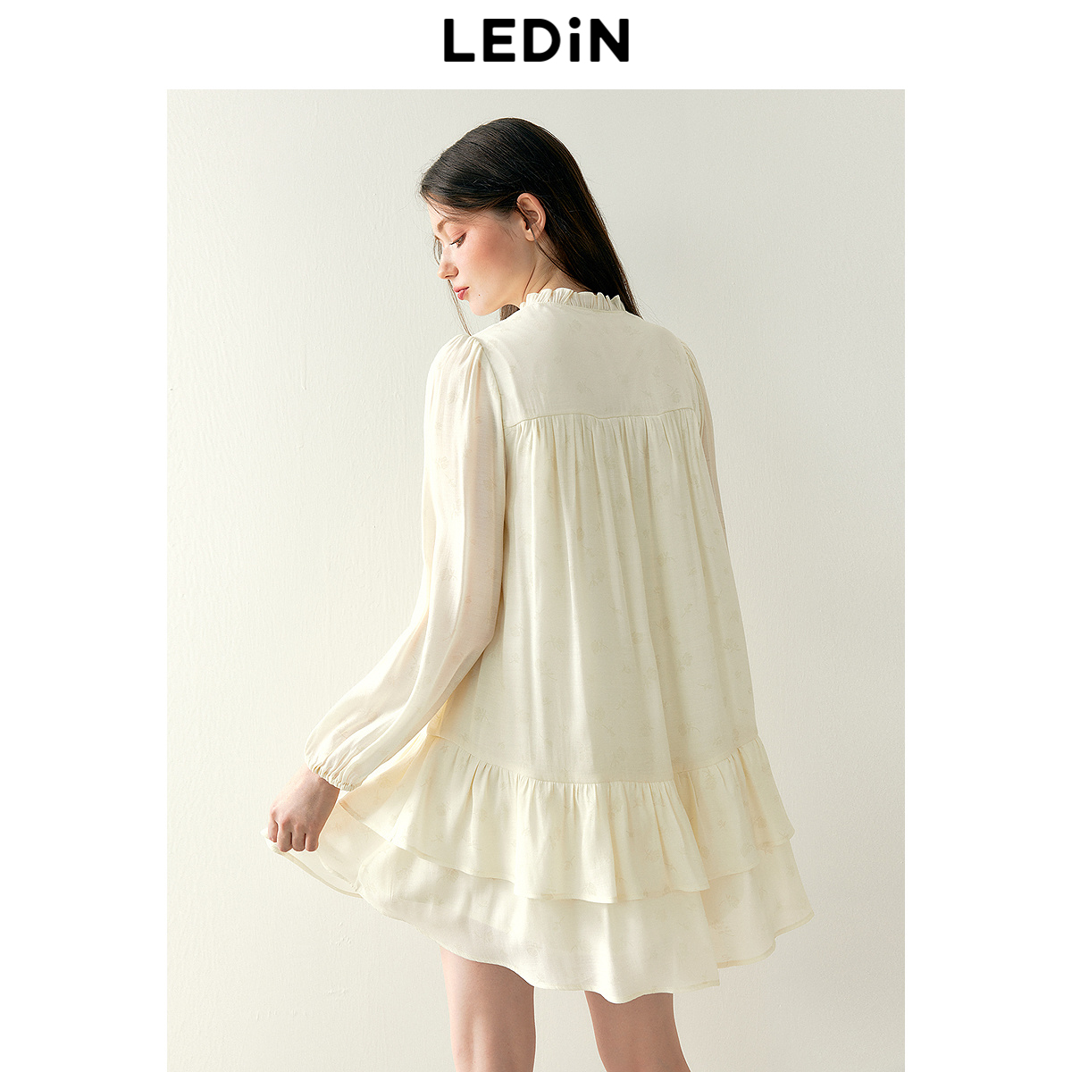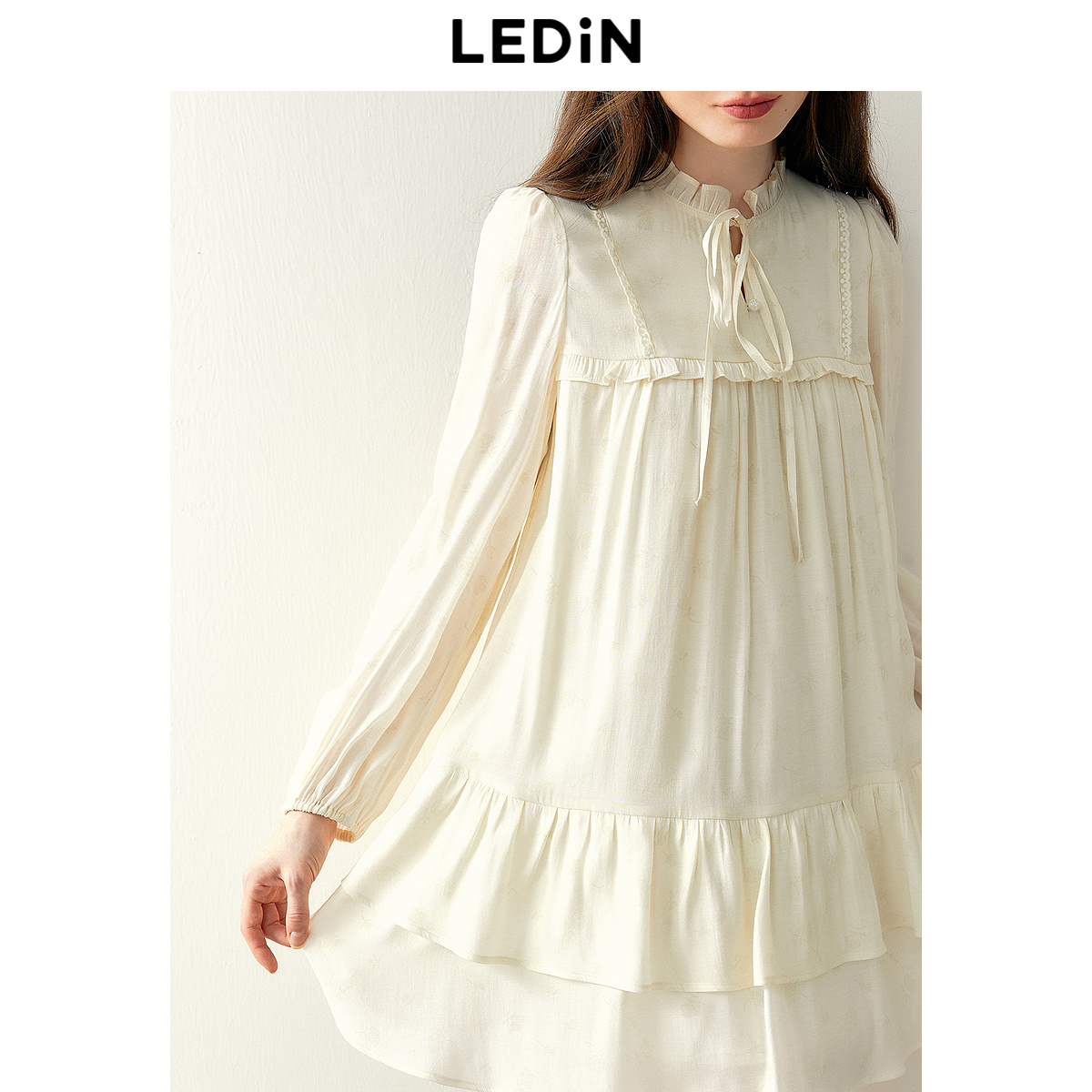 乐町花朵暗纹长袖娃娃裙秋季新款宽松A版衬衫裙甜美浪漫小白裙