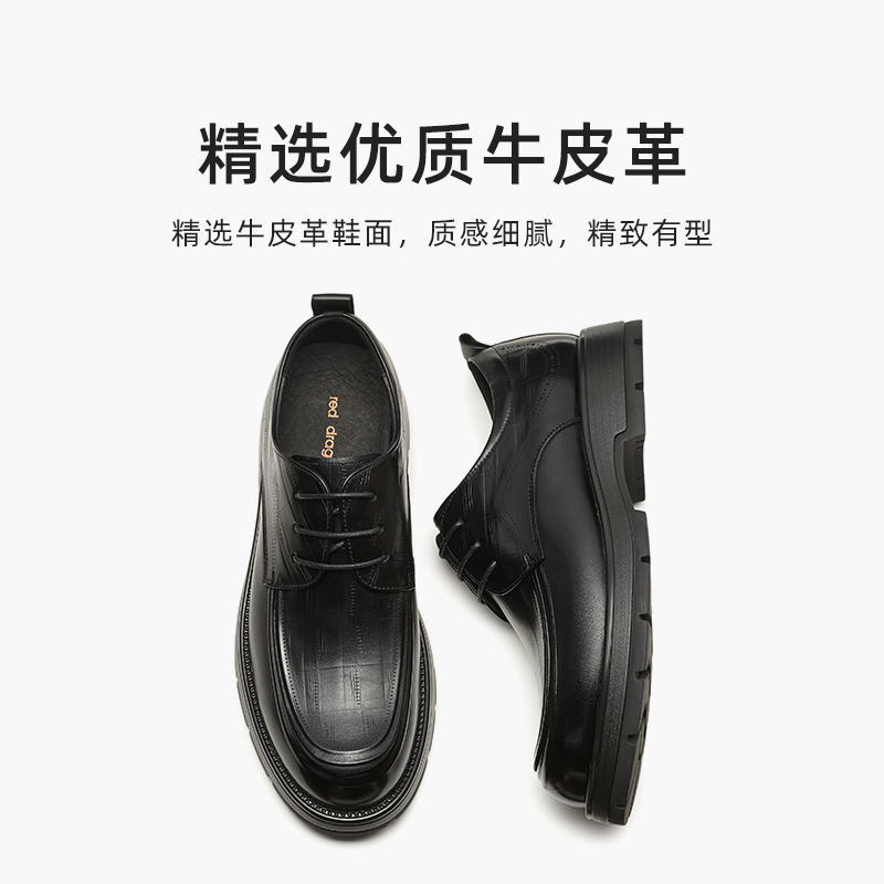 红蜻蜓正装皮鞋春秋新款男鞋厚底增高商务真皮德比皮鞋新郎鞋婚鞋