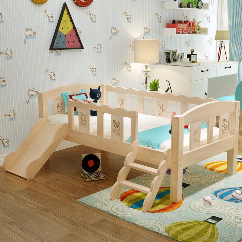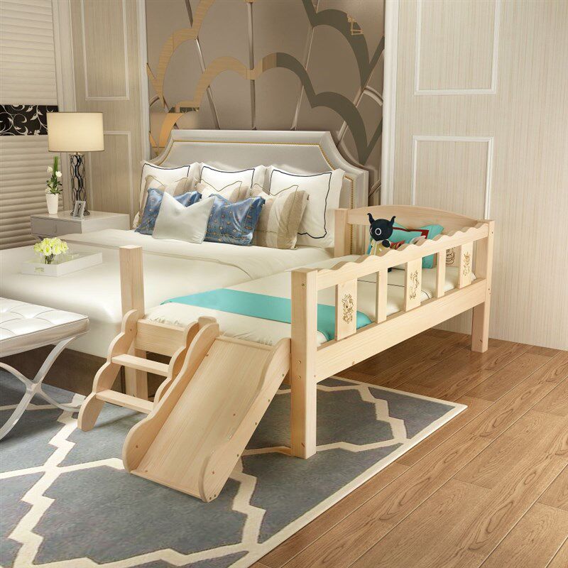 实木儿童婴儿床带护栏男孩女孩拼接大床宝宝O床分床幼儿床滑滑梯