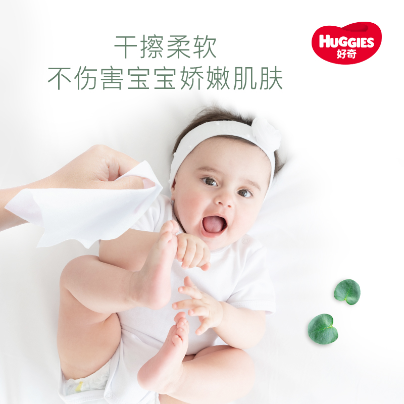 好奇植物棉柔巾婴儿专用干湿两用洗脸巾擦嘴手口屁屁一次性小毛巾