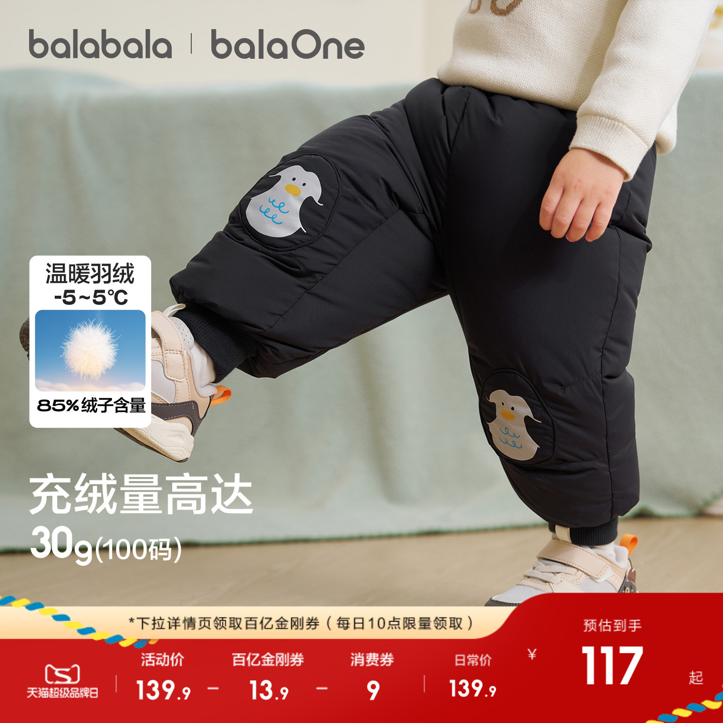 巴拉巴拉童装儿童羽绒裤男童长裤2025秋冬装新款女童宝宝裤子加厚
