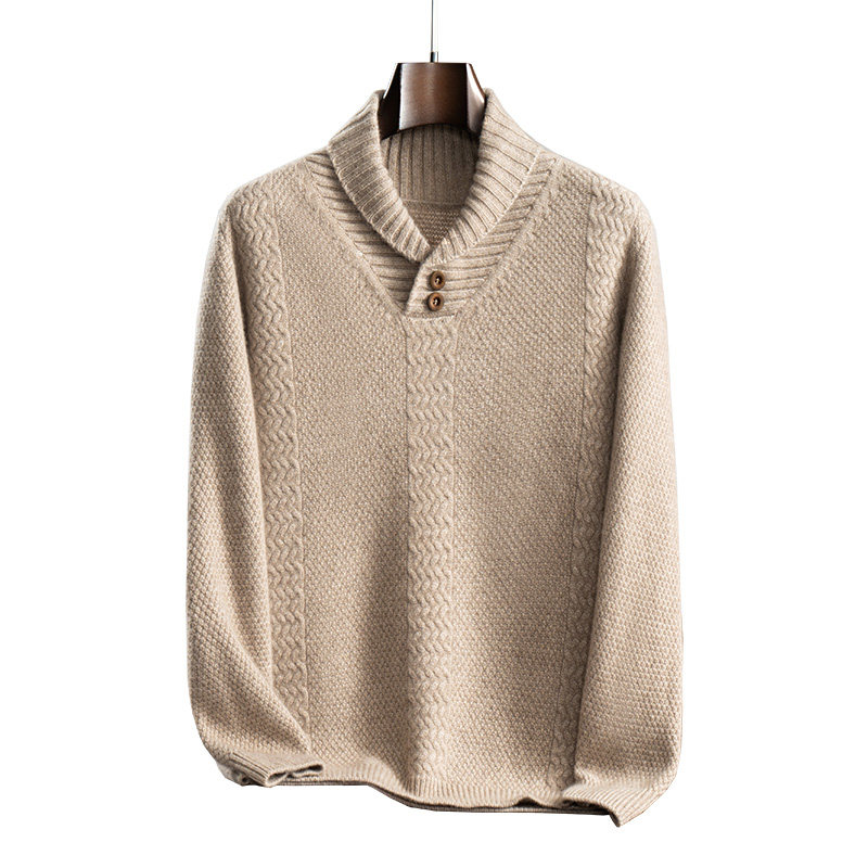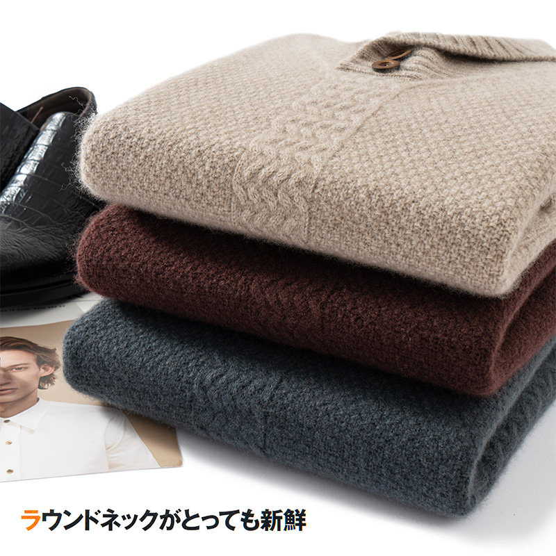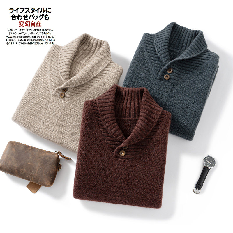 羊绒衫男重磅加厚翻领纽扣纯色青果领内搭羊毛衫男针织衫外套