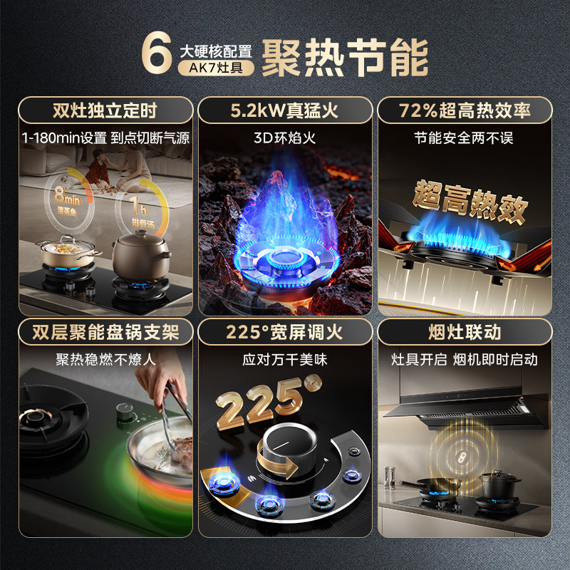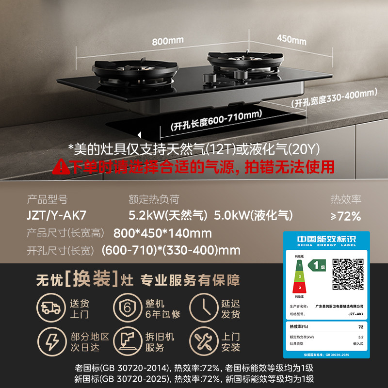 [新品]美的AK7双灶定时猛火燃气灶煤气天然气液化气家用灶台官方