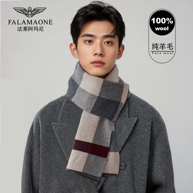 法莱阿玛尼男士纯羊毛围巾礼盒装