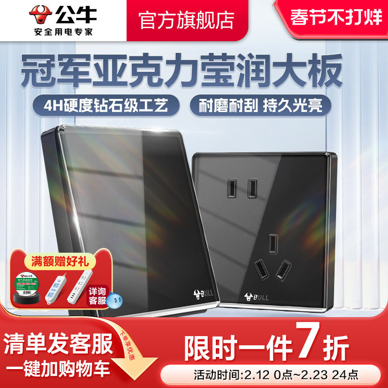 公牛官方亚克力材质开关面板带usb嵌入式五孔插座家用暗装G62黑