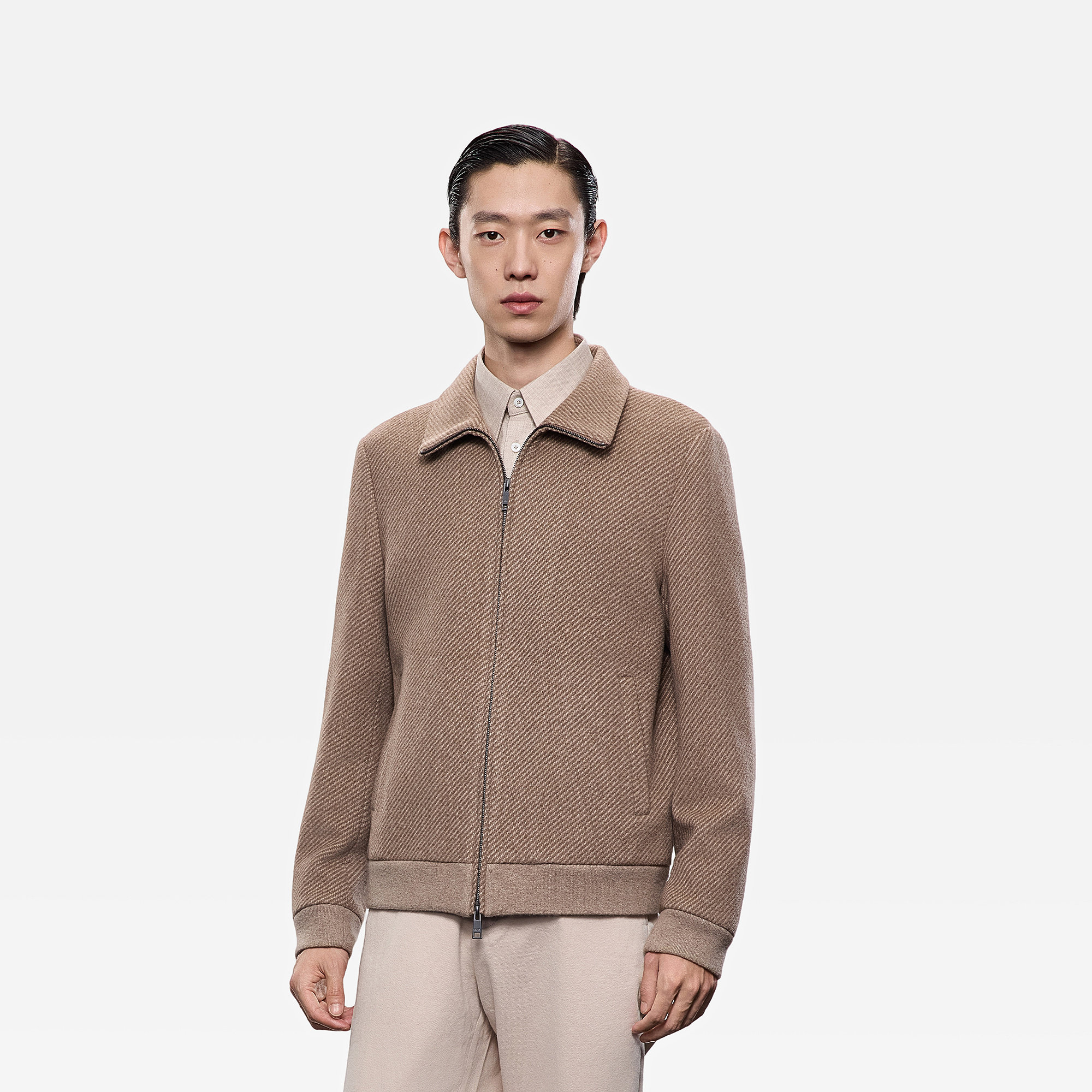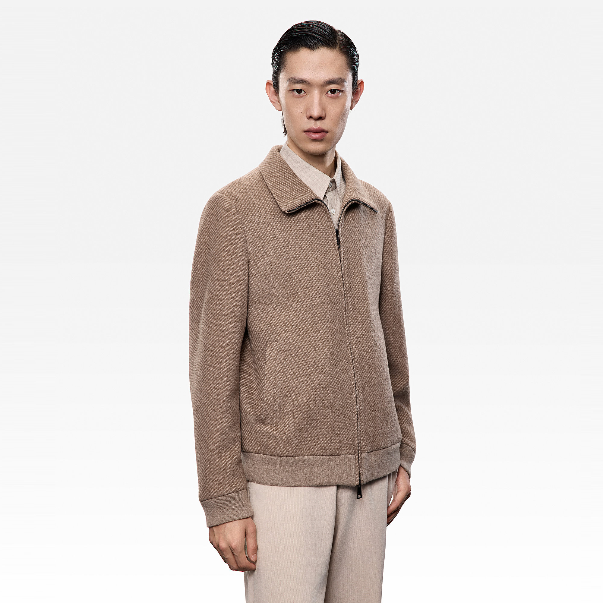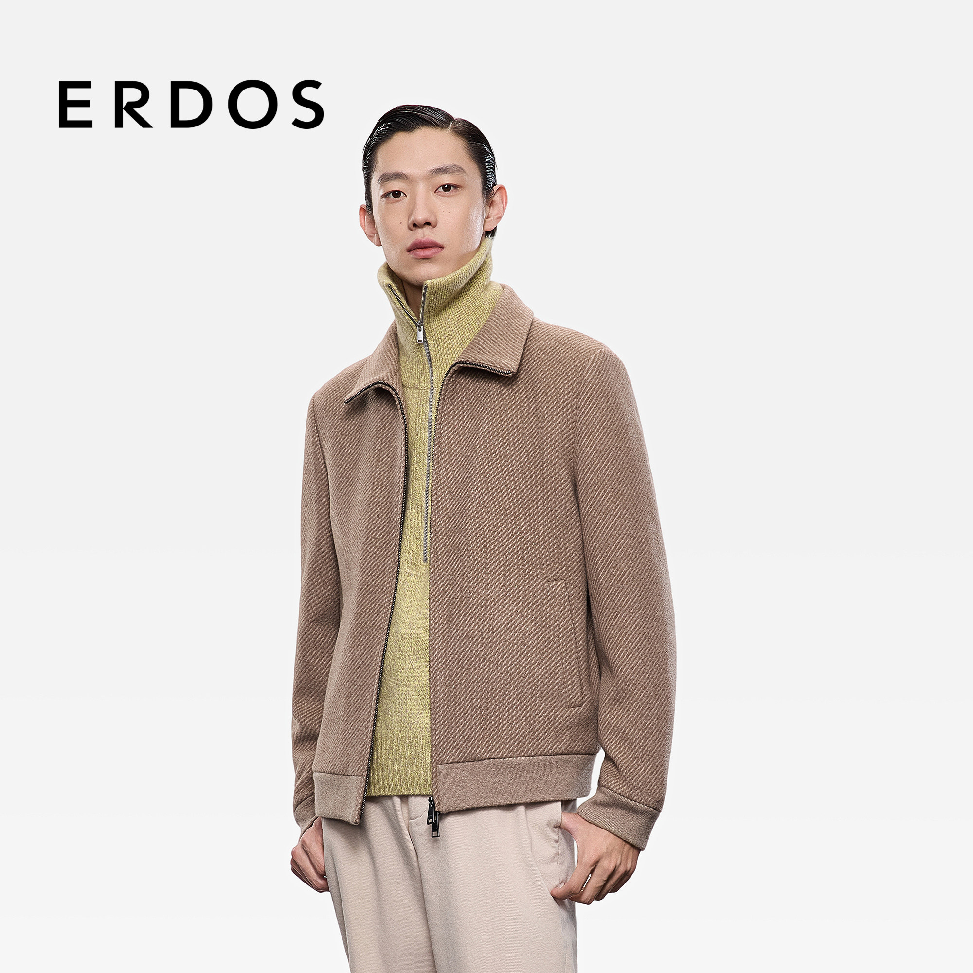 ERDOS 男装羊绒翻领夹克25年秋冬新品原色斜纹老钱风休闲外套