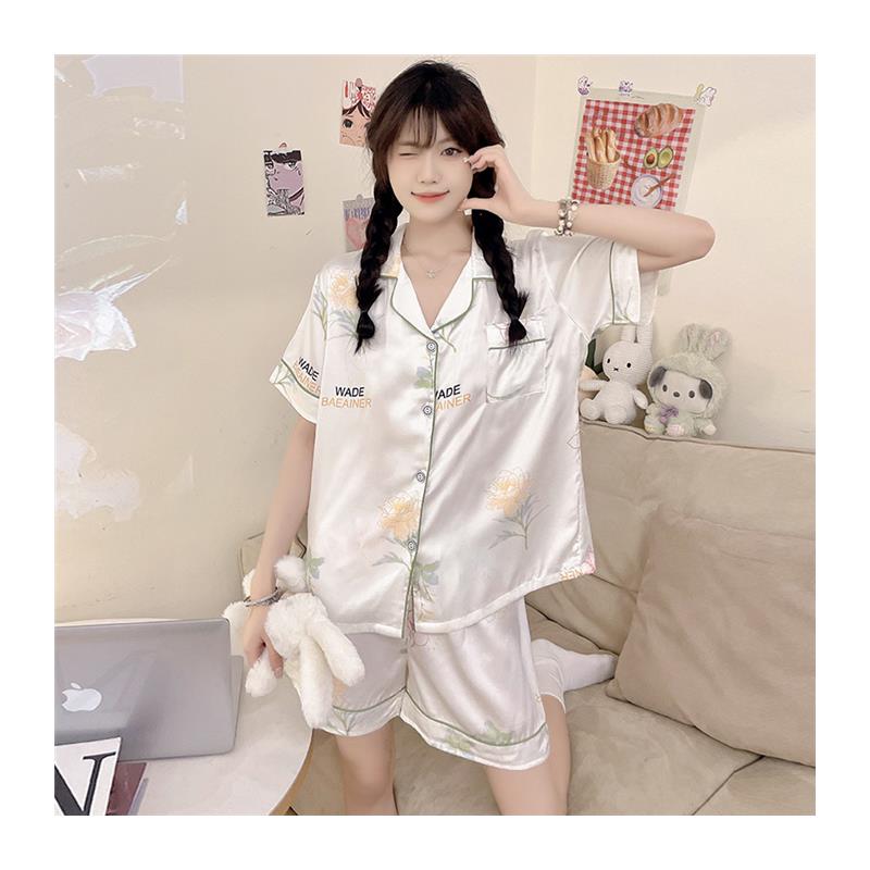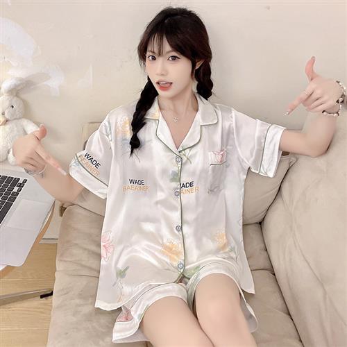 冰雪丝睡衣女夏季开衫短袖短裤两件套装夏天仿真丝绸高级感家居服